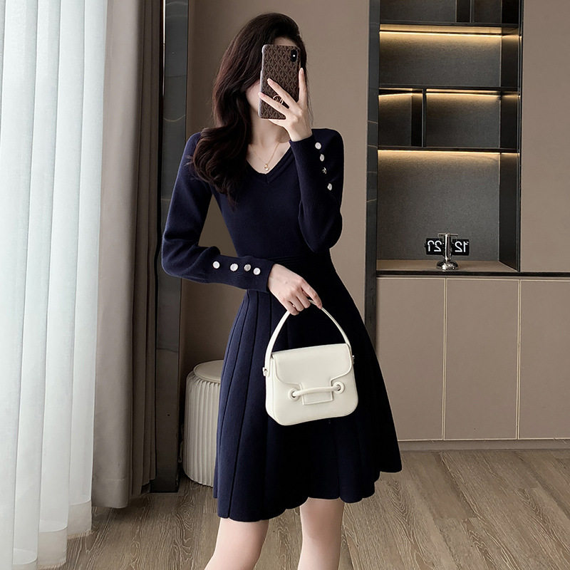 法式小香风针织连衣裙女秋冬季新款小个子高级感打底A字毛衣裙子