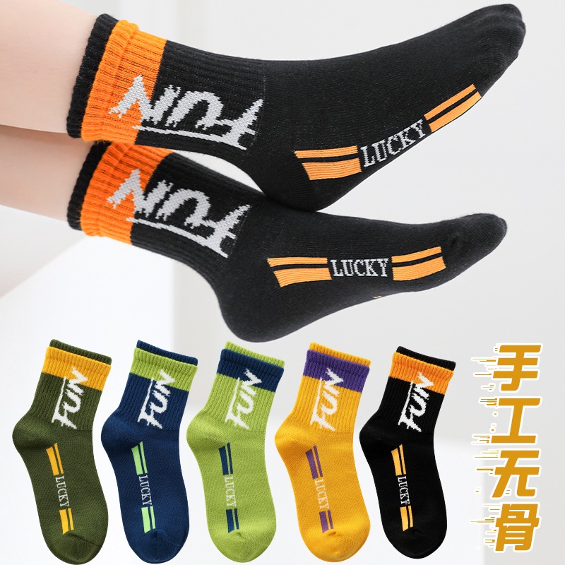 男童袜子春秋款纯棉中筒秋冬季儿童青少年大童无骨篮球运动袜防臭