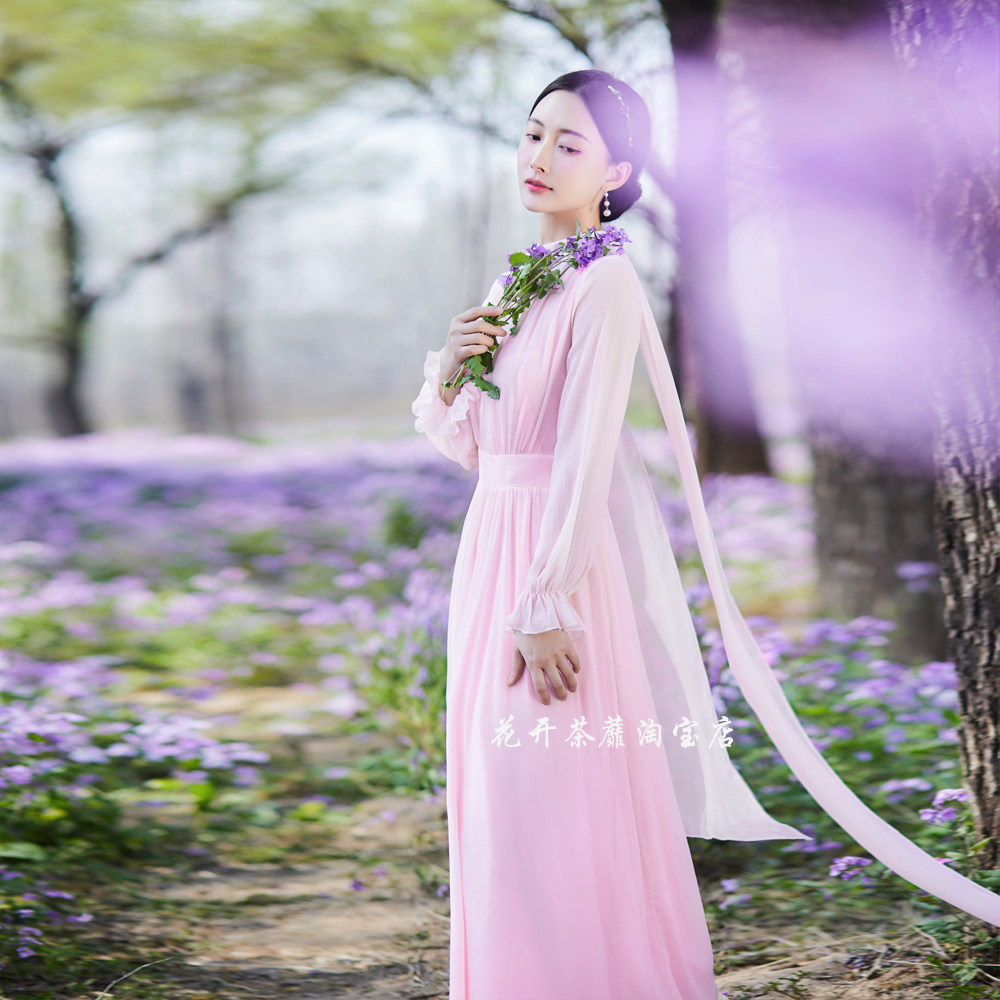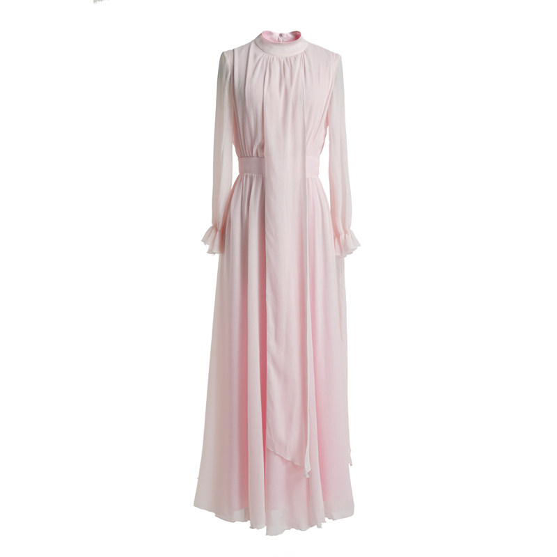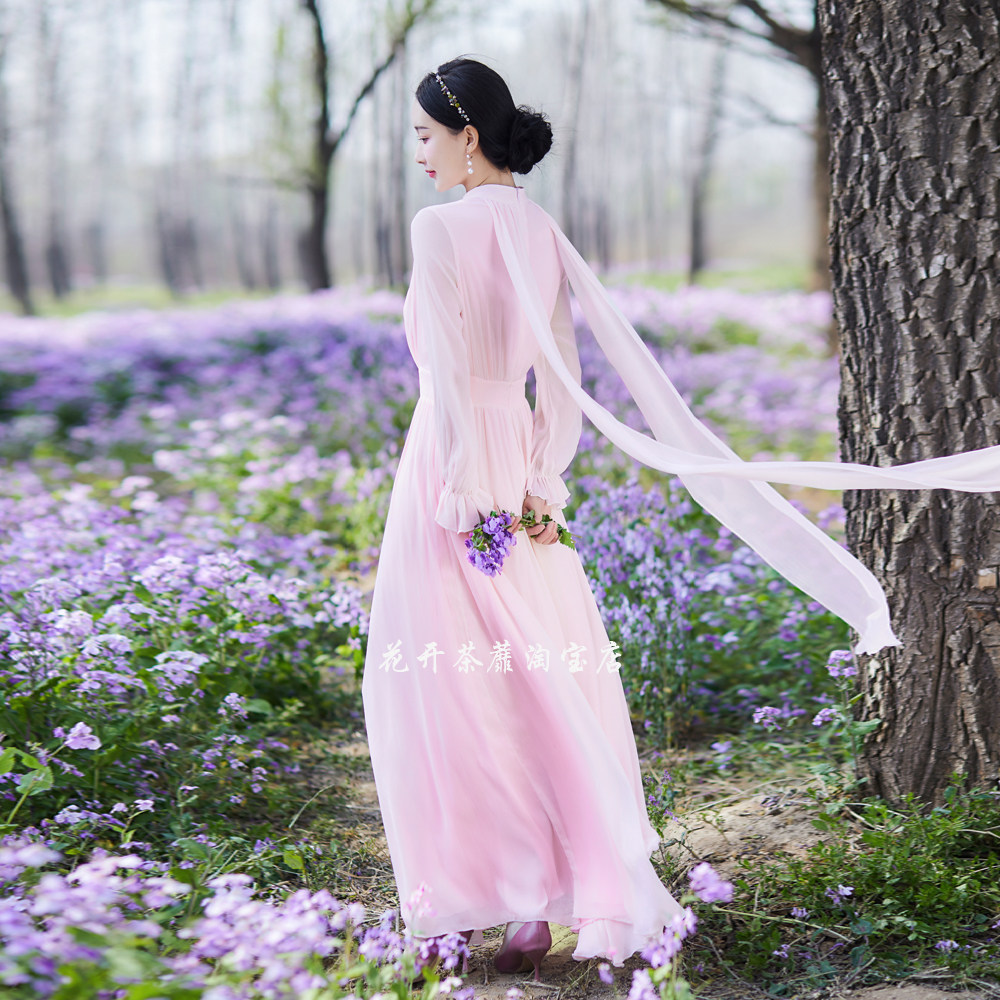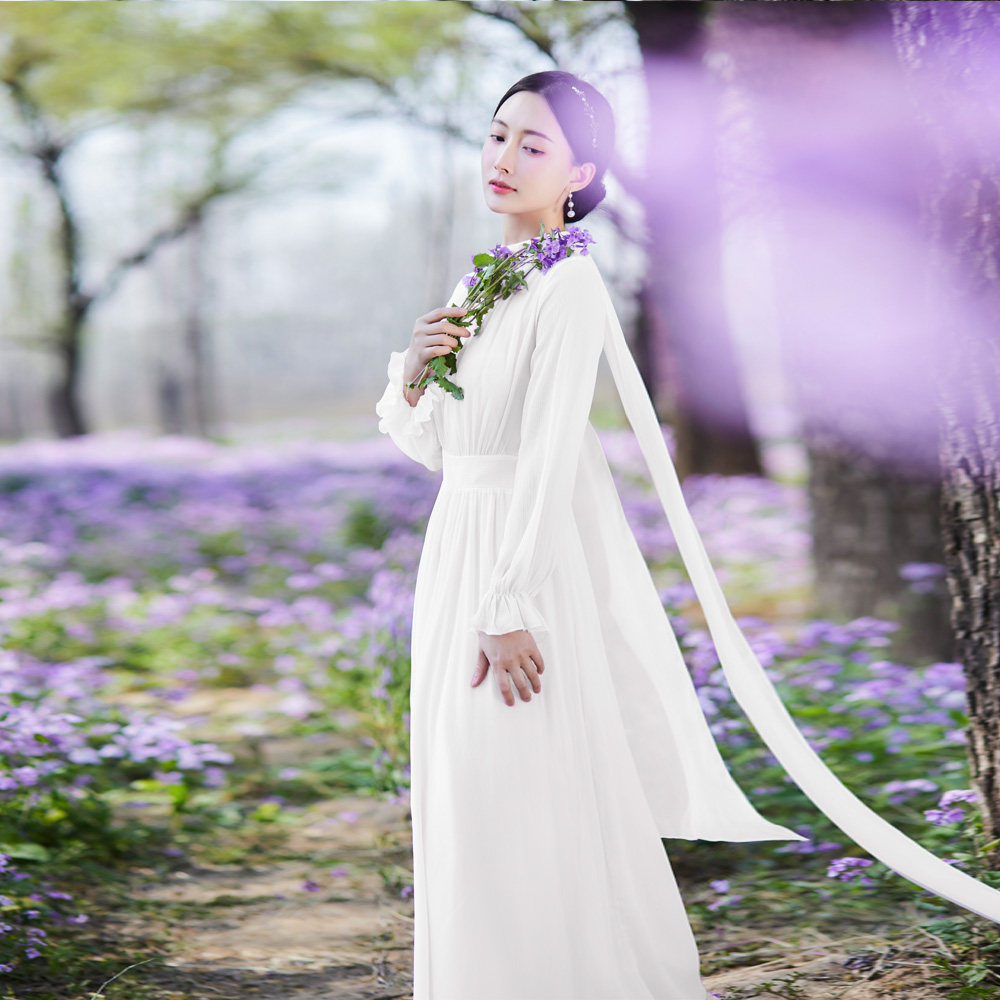 夏季长袖雪纺设计感气质连衣裙女神范仙女白色别致惊艳长裙高级感