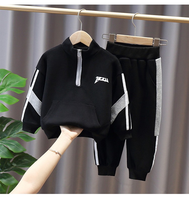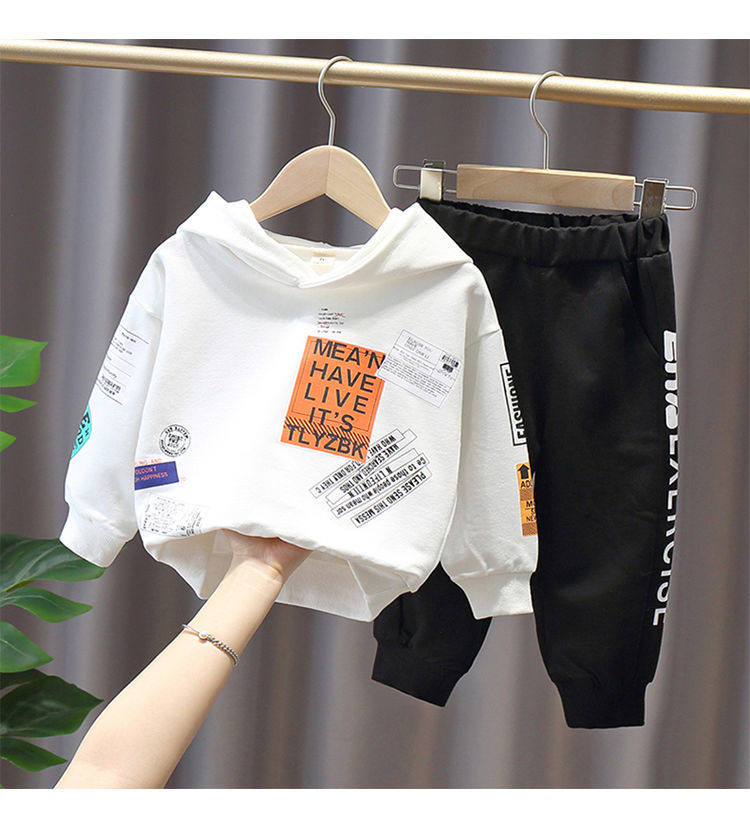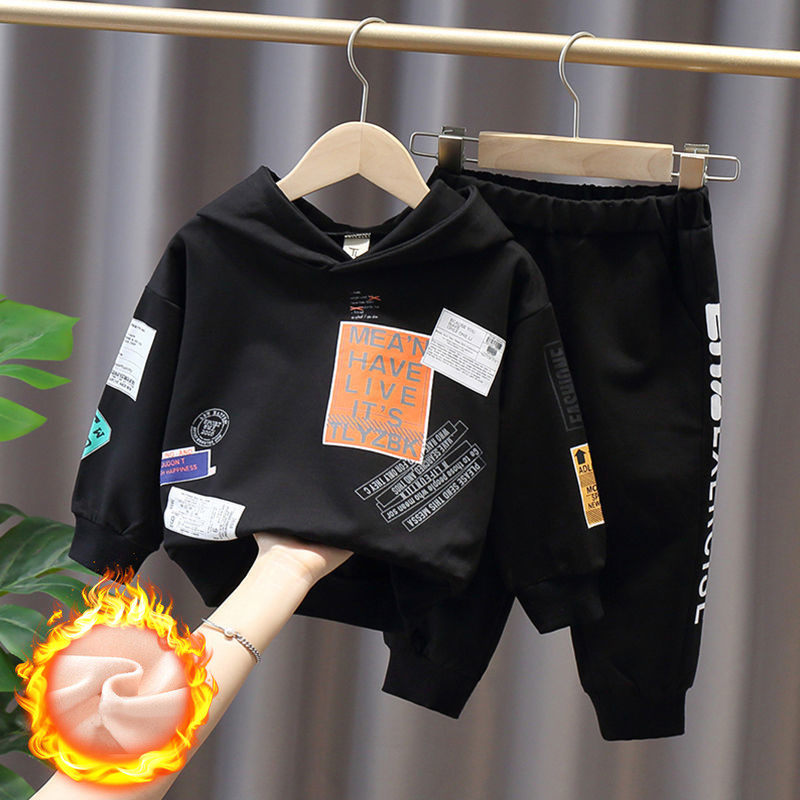 男童春秋套装2025新款男孩运动加绒加厚儿童韩版洋气卫衣两件套潮