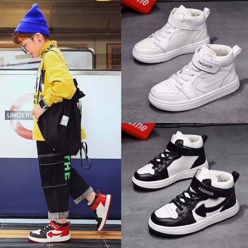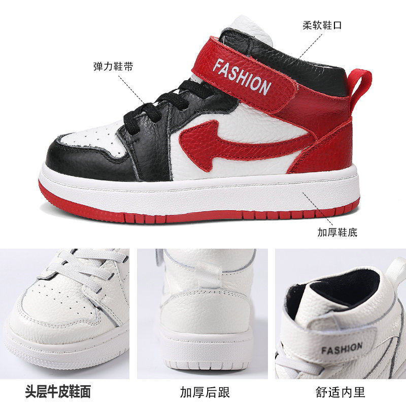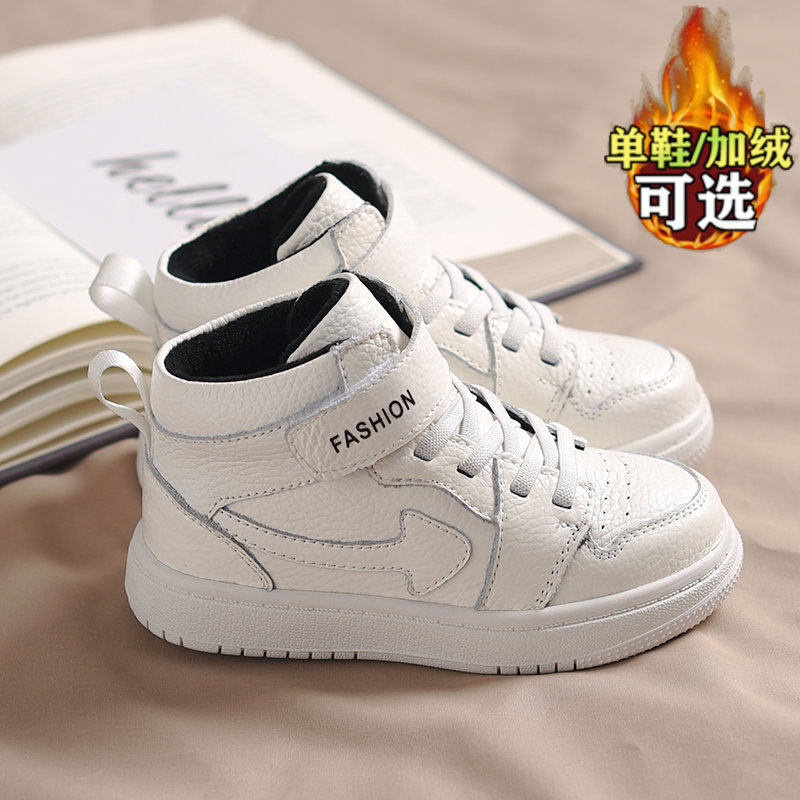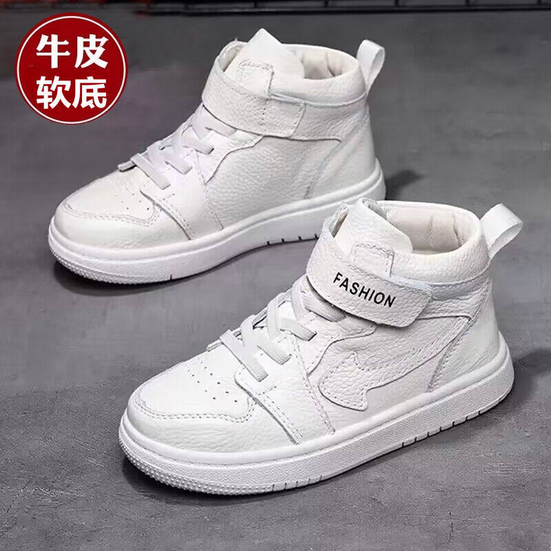 儿童小白鞋头层牛皮男童鞋子春秋真皮运动鞋幼儿园男孩白色板鞋软