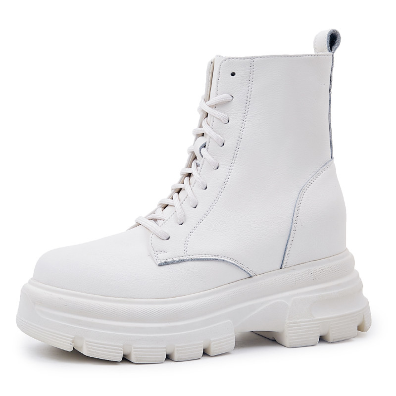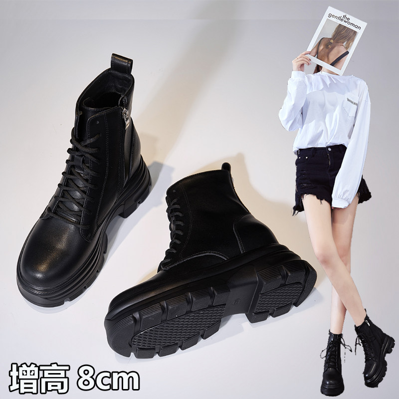 秋冬显脚小厚底内增高马丁靴女小个子8cm真皮小码短靴女显高靴子