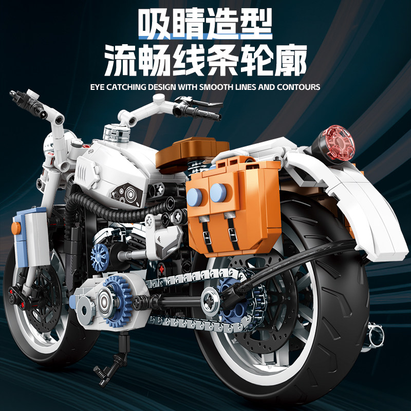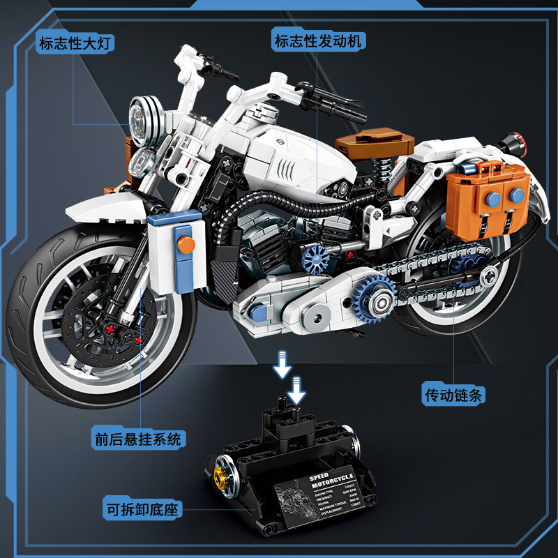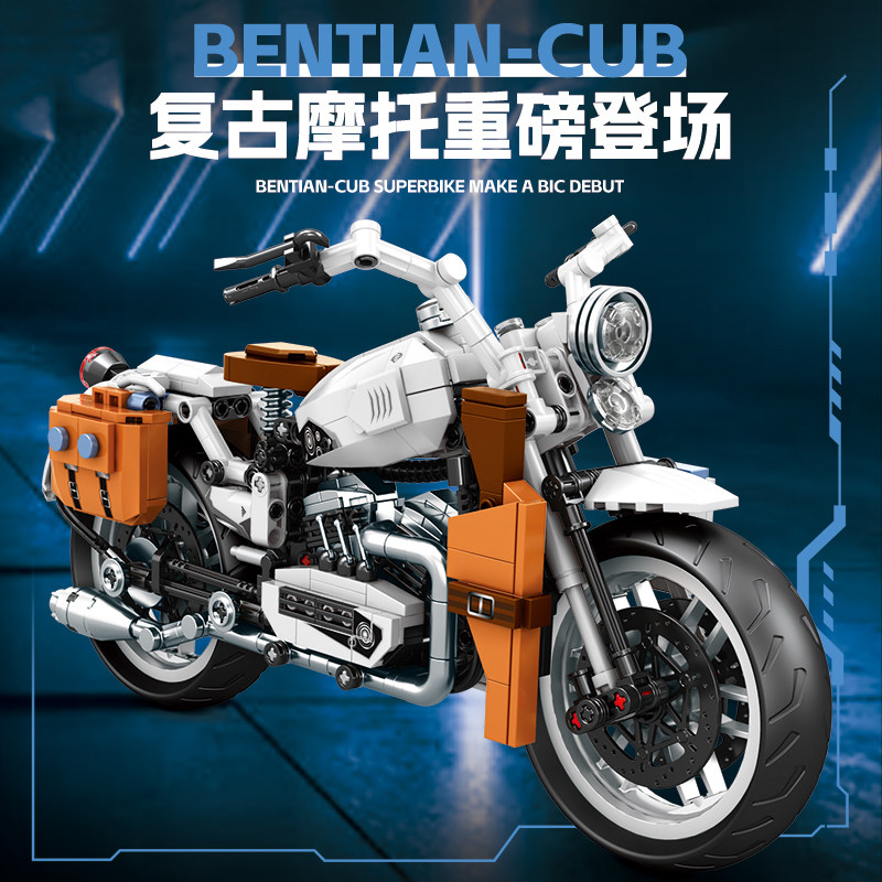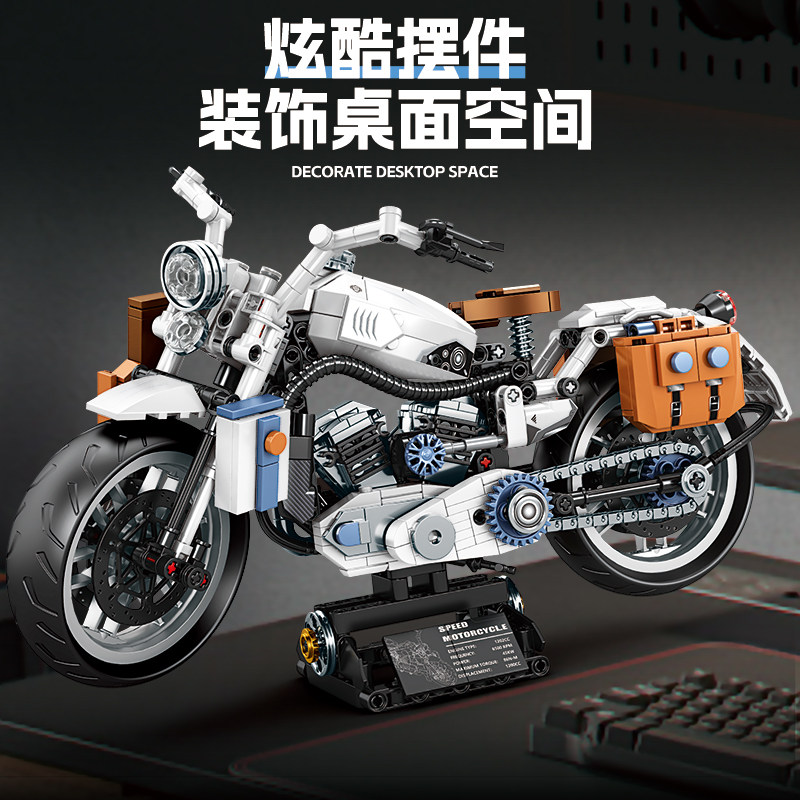 2025新款复古摩托车积木模型拼装男孩新年儿童6-12岁拼图摆件礼物
