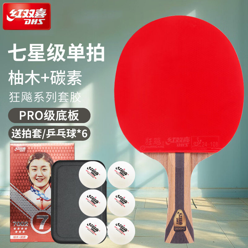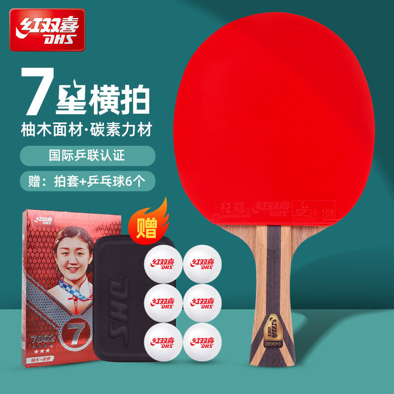 红双喜乒乓球拍七星级单拍狂飚7星彩色胶皮专业横拍直拍成品拍
