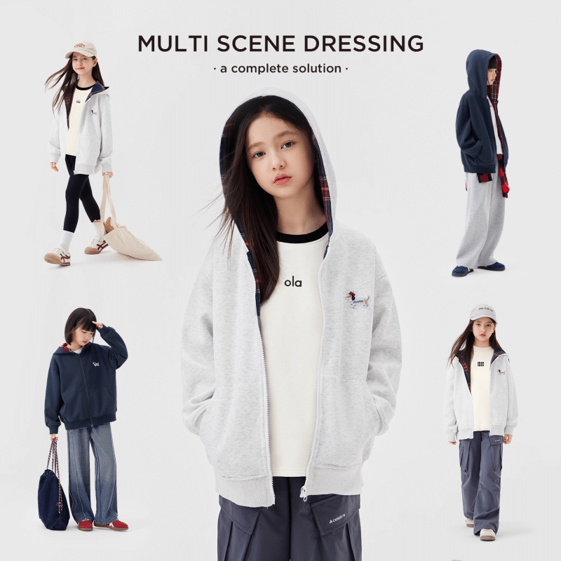 左西女童外套2026春季新款儿童卫衣青少年腊肠狗格子连帽衫春秋装