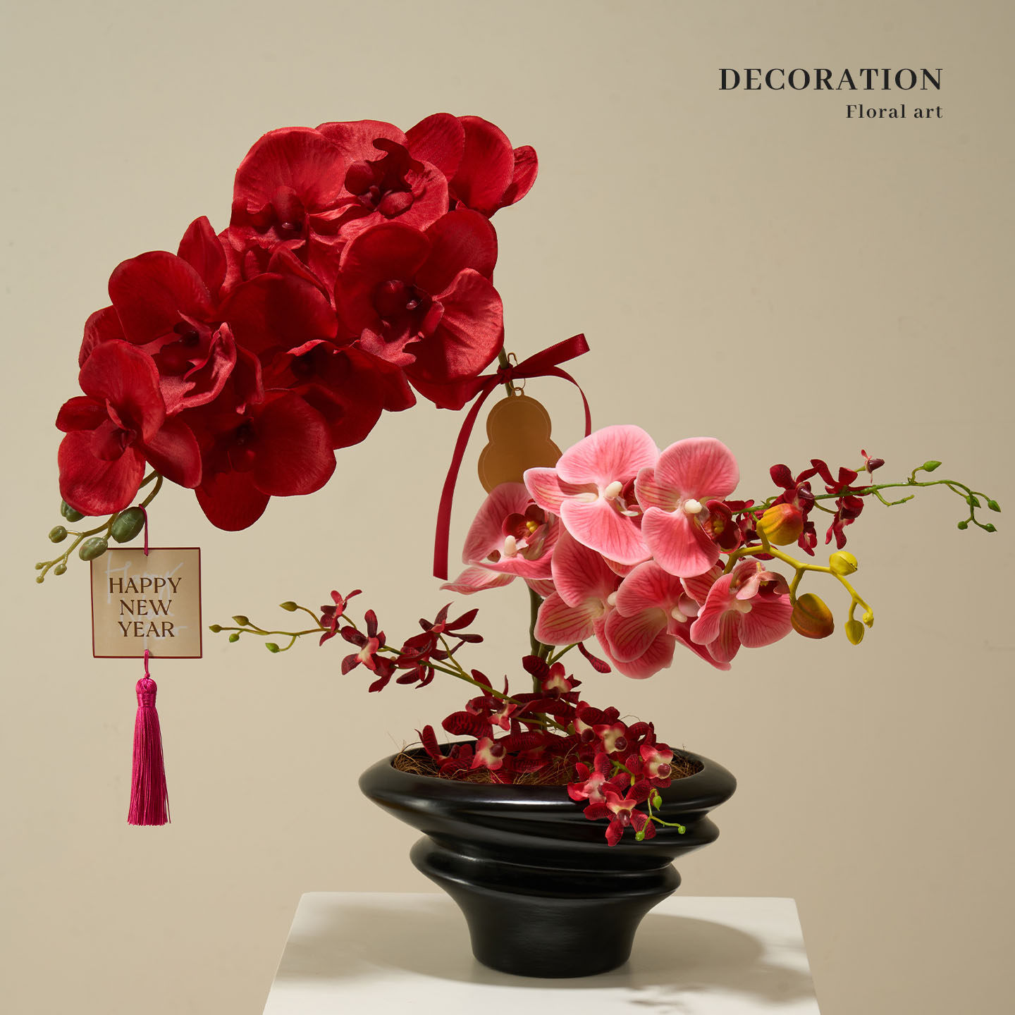 新年礼物装饰品年味氛围布置年宵花仿真花蝴蝶兰马年桌面创意摆件