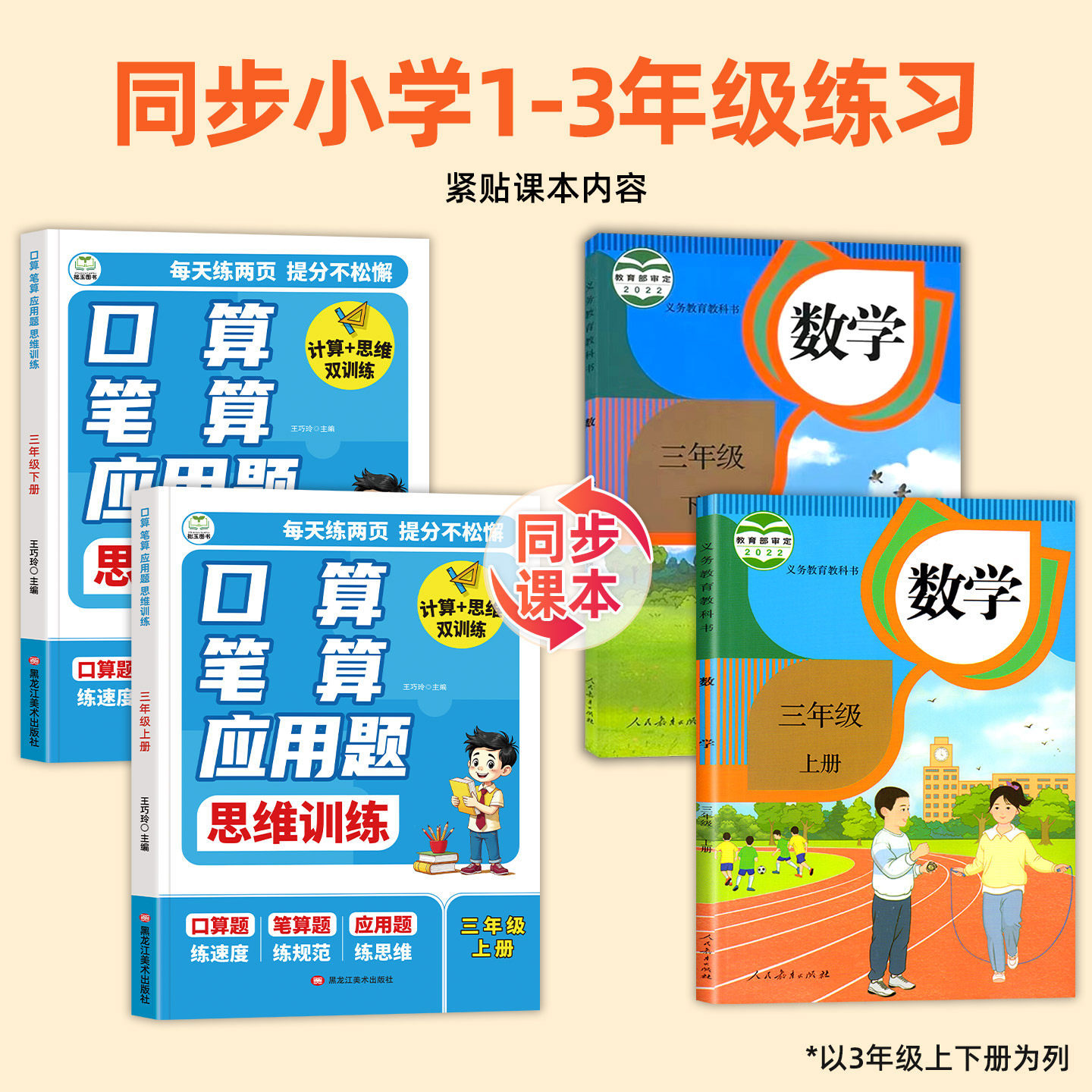 口算天天练人教版一年级二年级三年级上册下册数学口算题卡练习口算笔算竖式脱式应用题思维训练计算题专项强化训练口算题每日一练
