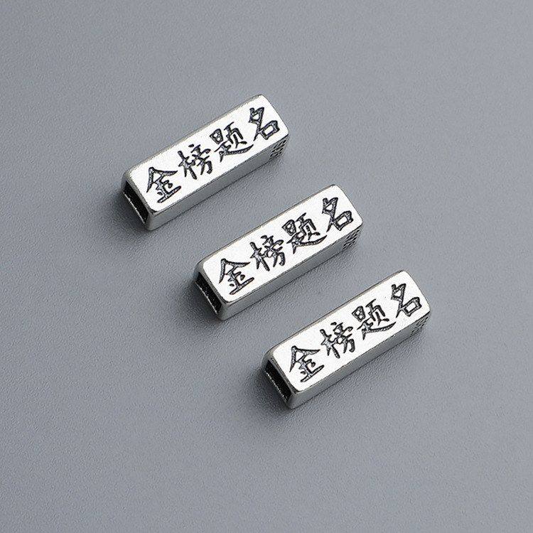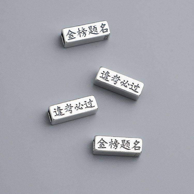 纯银考必过配件S925手链隔珠金榜题名编绳散珠手工逢泰银DIY方管