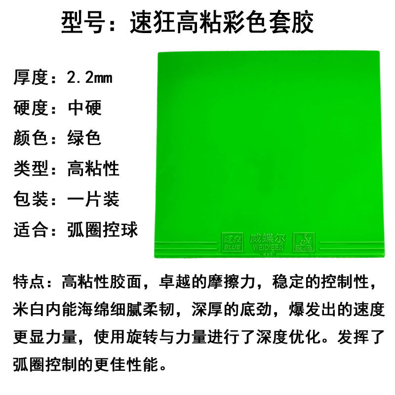 威蝶尔速狂高粘性彩色乒乓球胶皮乒乓球拍反胶套胶内能弧圈/快攻