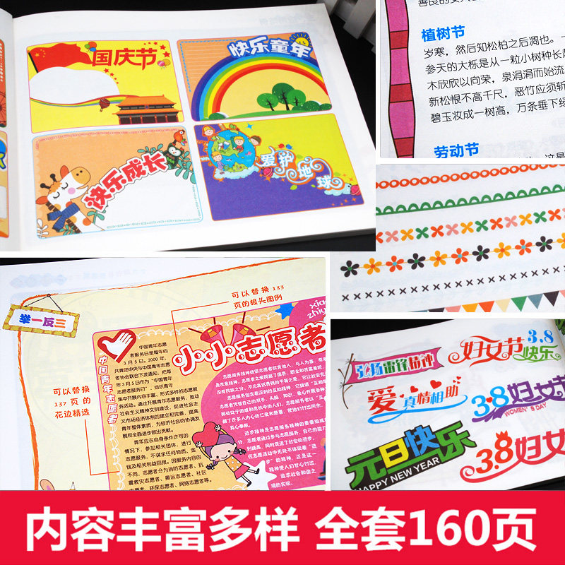 小学生黑板报大全手抄报设计书籍 模板新年创新创意节日一二三四五六年级儿童手绘版海报素材书劳动节图案大全