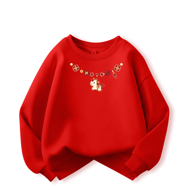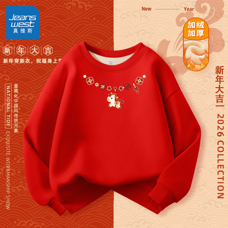 真维斯儿童红色卫衣男童拜年服2026新款本命年过年服女童加绒上衣
