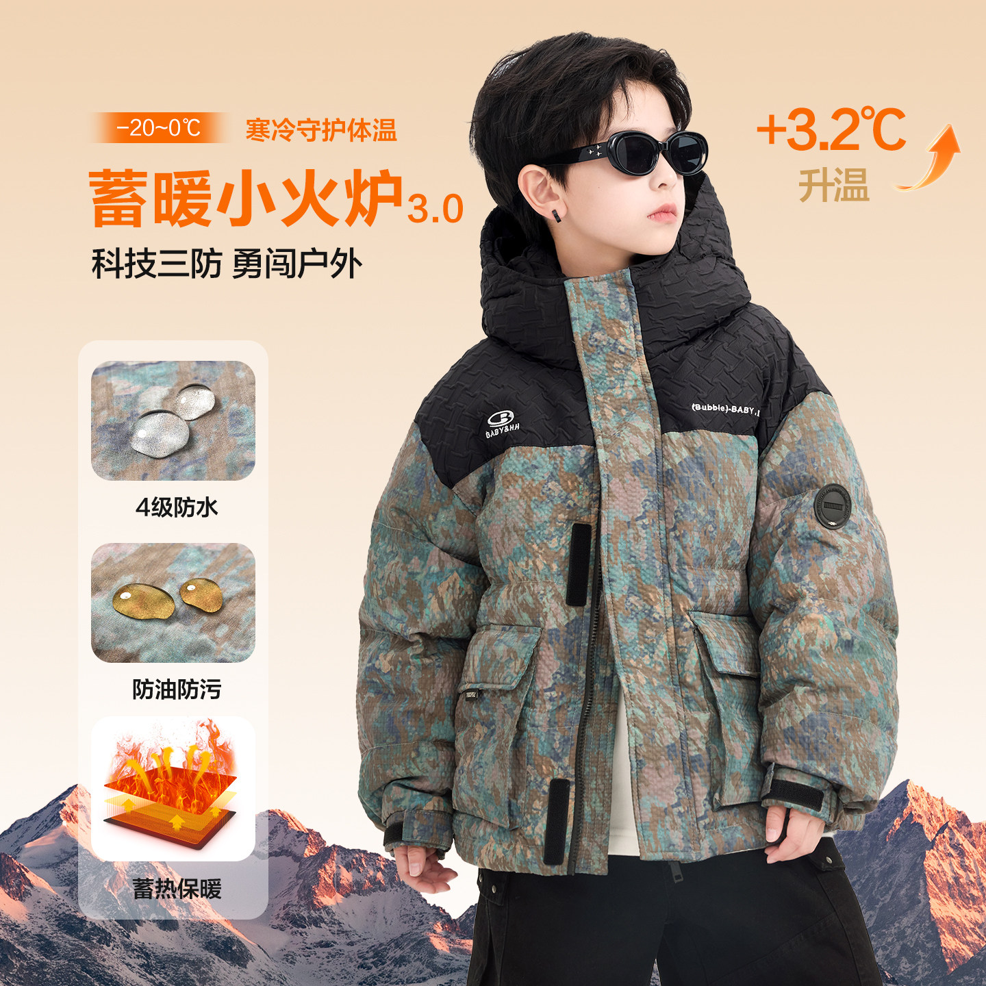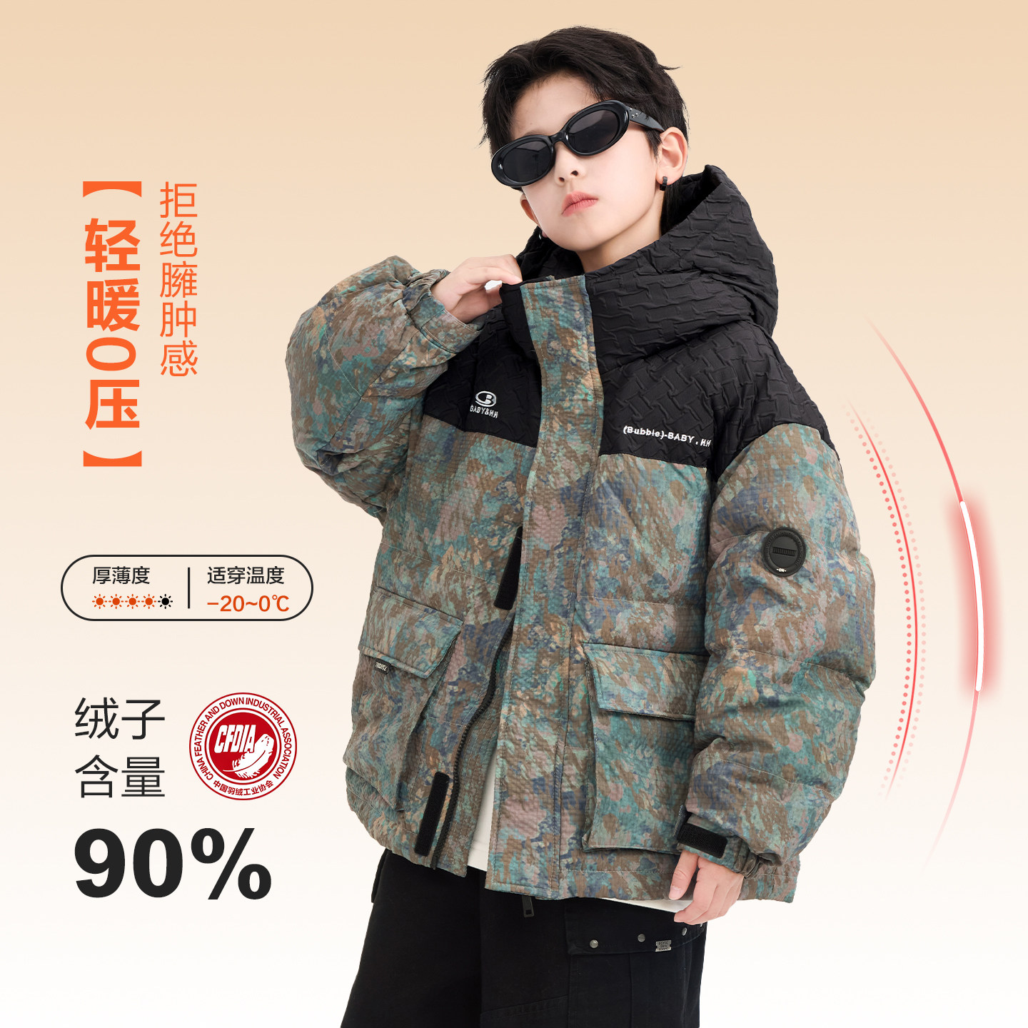 男童冬装撞色迷彩工装羽绒服爆款2025新款青少年儿童防寒加厚外套