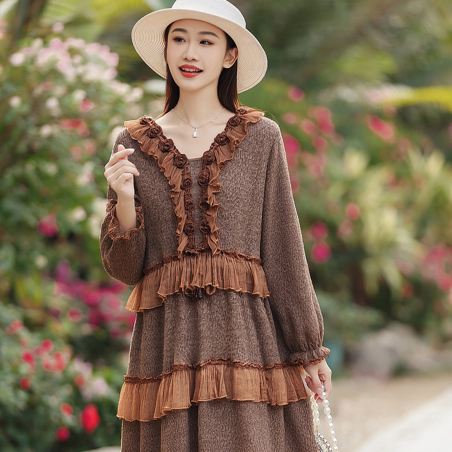 毛织连衣裙女秋冬新款时尚百搭高级感轻奢气质减龄收腰打底中长款
