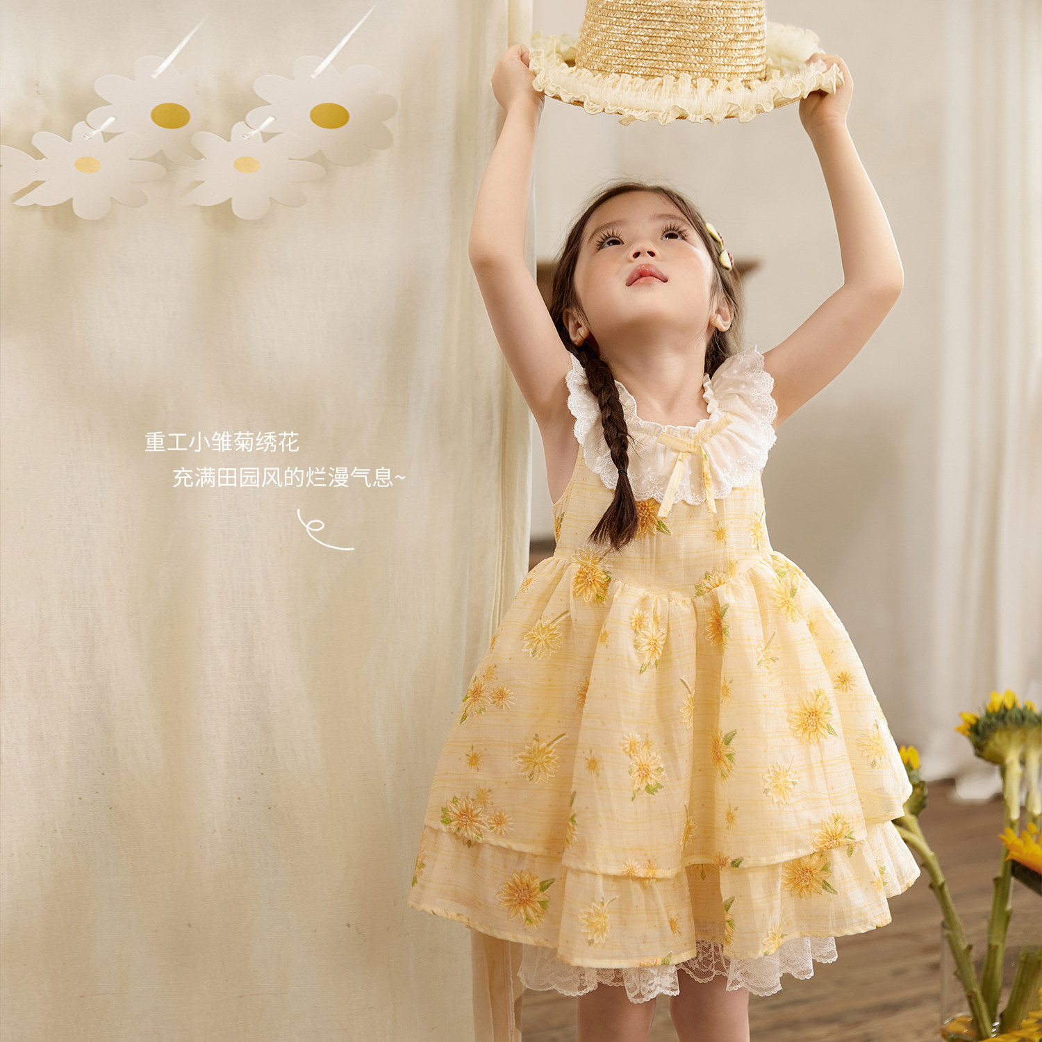 小O宝童装宝宝重工满绣小雏菊连衣裙夏2025女童度假超好看公主裙