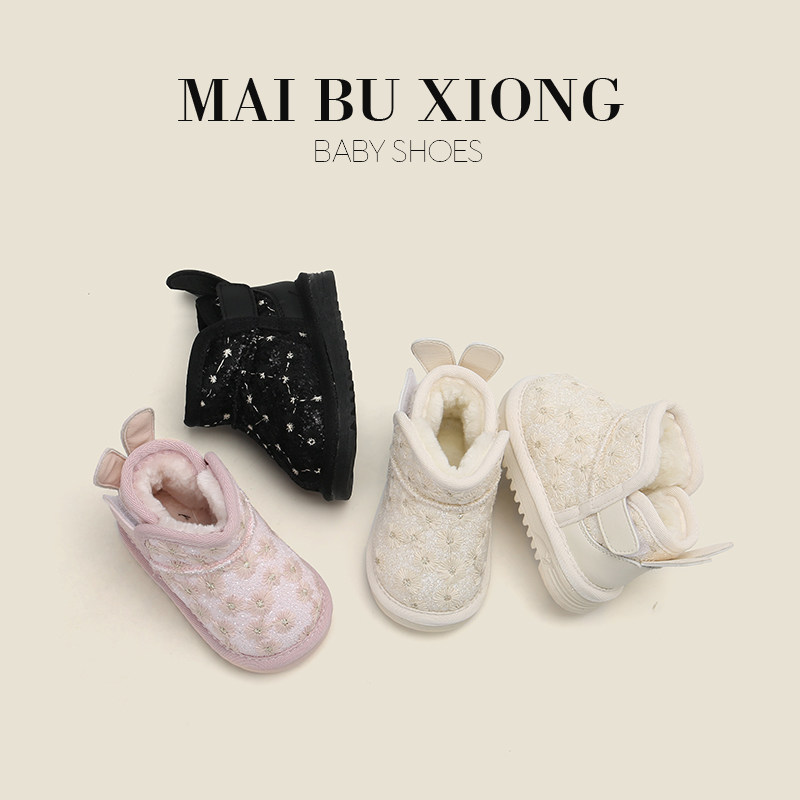 女宝宝雪地靴软底学步鞋子婴儿鞋加绒棉鞋秋冬款小童鞋女童短靴子