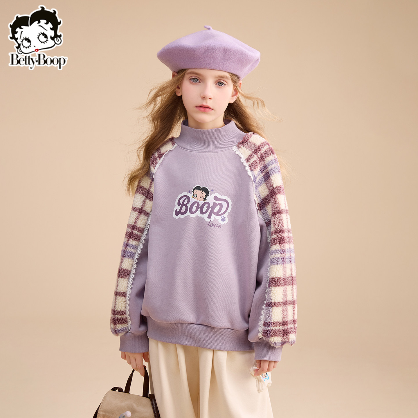 贝蒂女童秋冬加绒加厚套头卫衣2026年冬季儿童大童洋气半高领上衣