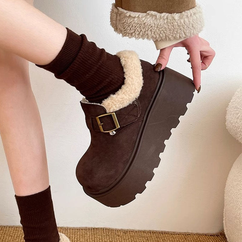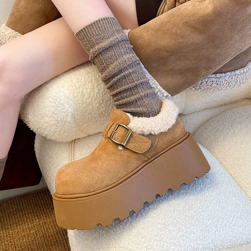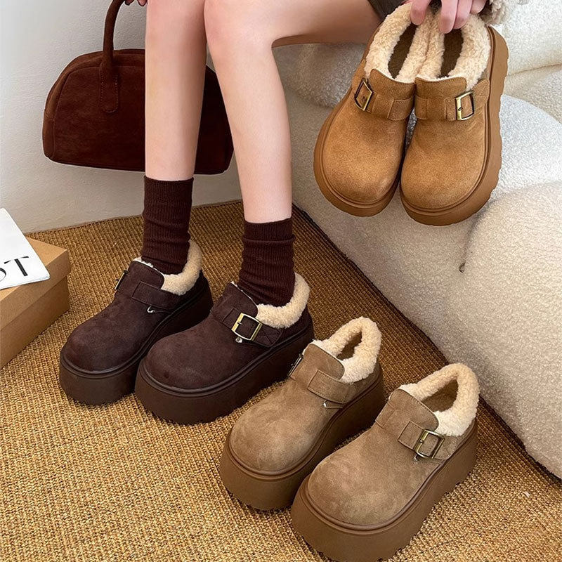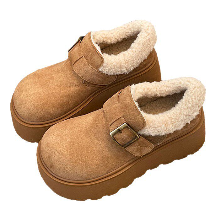 毛毛勃肯鞋女款厚底增高保暖乐福雪地靴25新款冬季加绒大头棉鞋JX