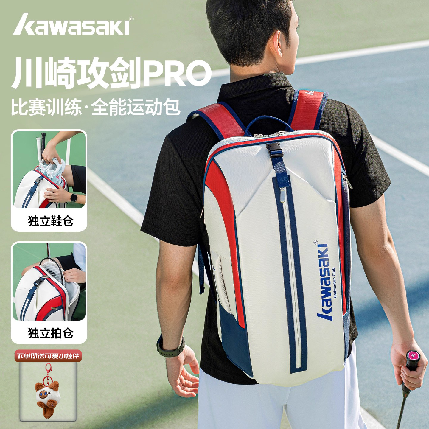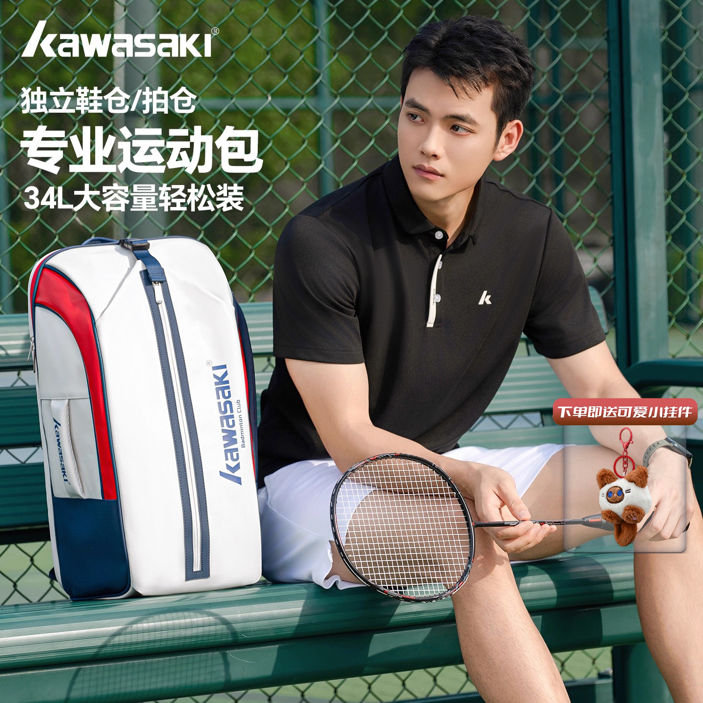 311线报网描述:川崎KAWASAKI羽毛球包双肩包