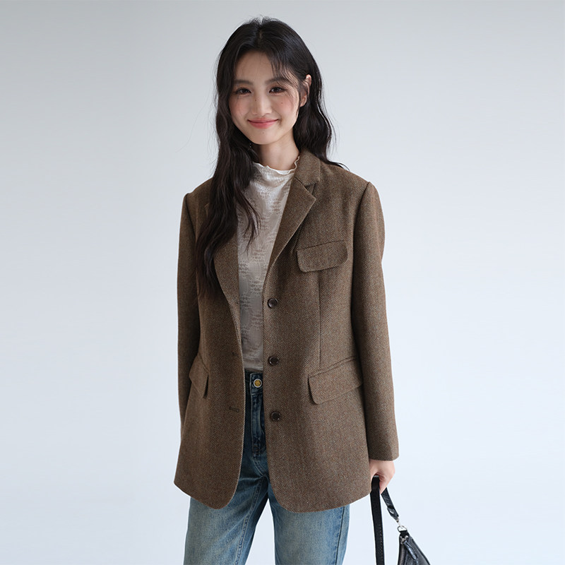 311线报网描述:时尚韩版宽松羊毛呢子西装外套显瘦百搭西服