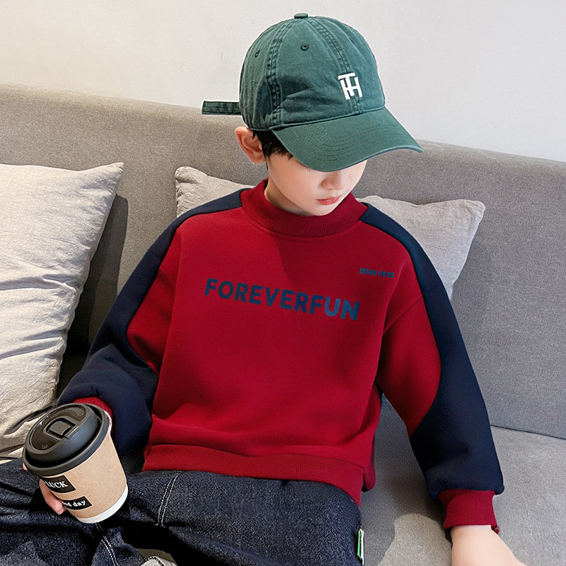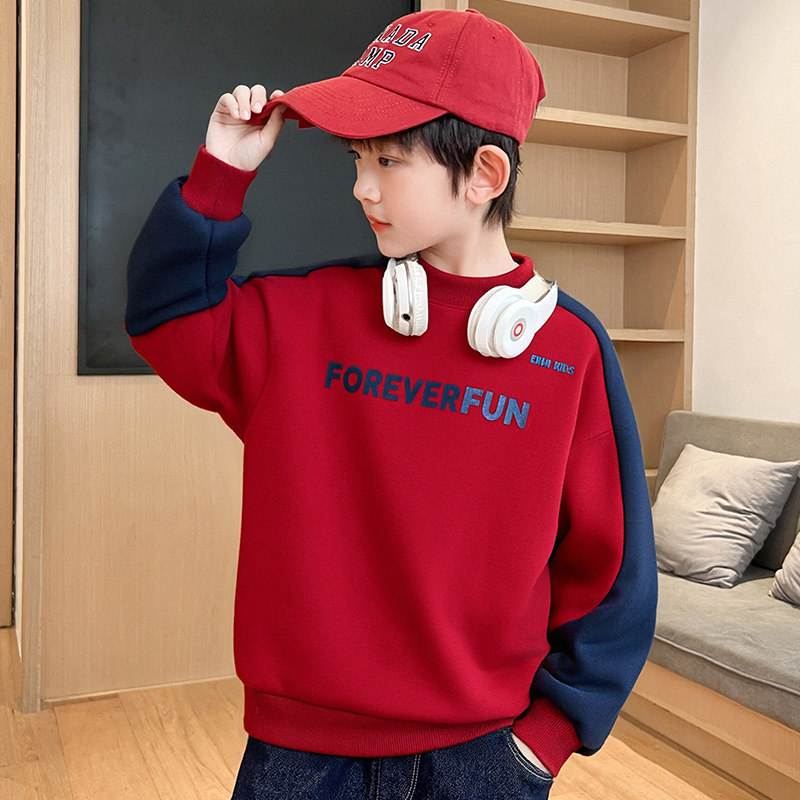 男童加绒卫衣2025新款中式保暖红色青少年新年上衣男孩洋气打底衫