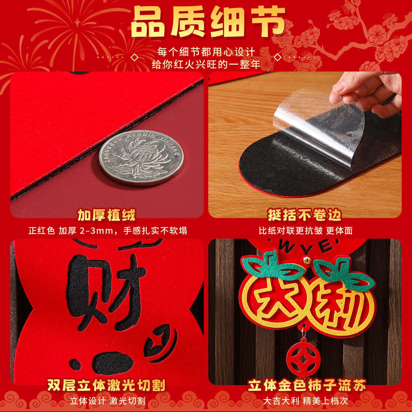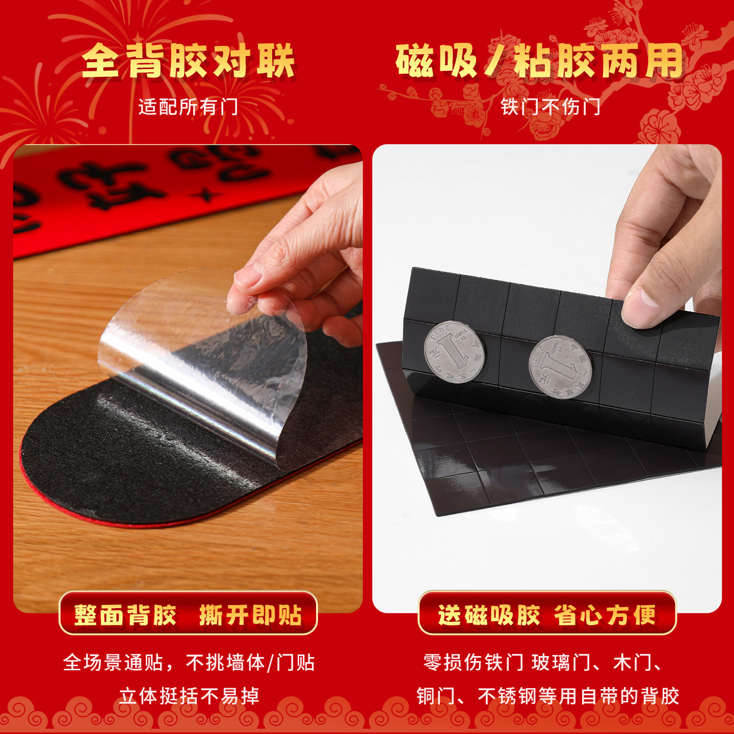 马年对联春联2026新款植绒黑字立体创意新年过年福字磁吸入户门贴