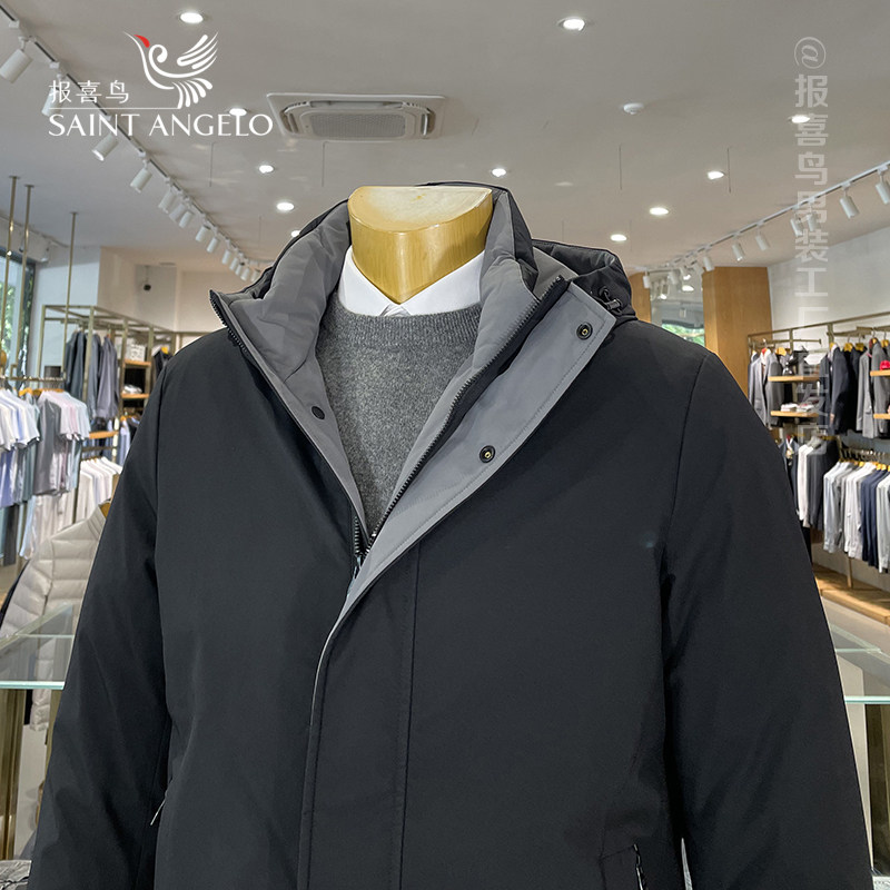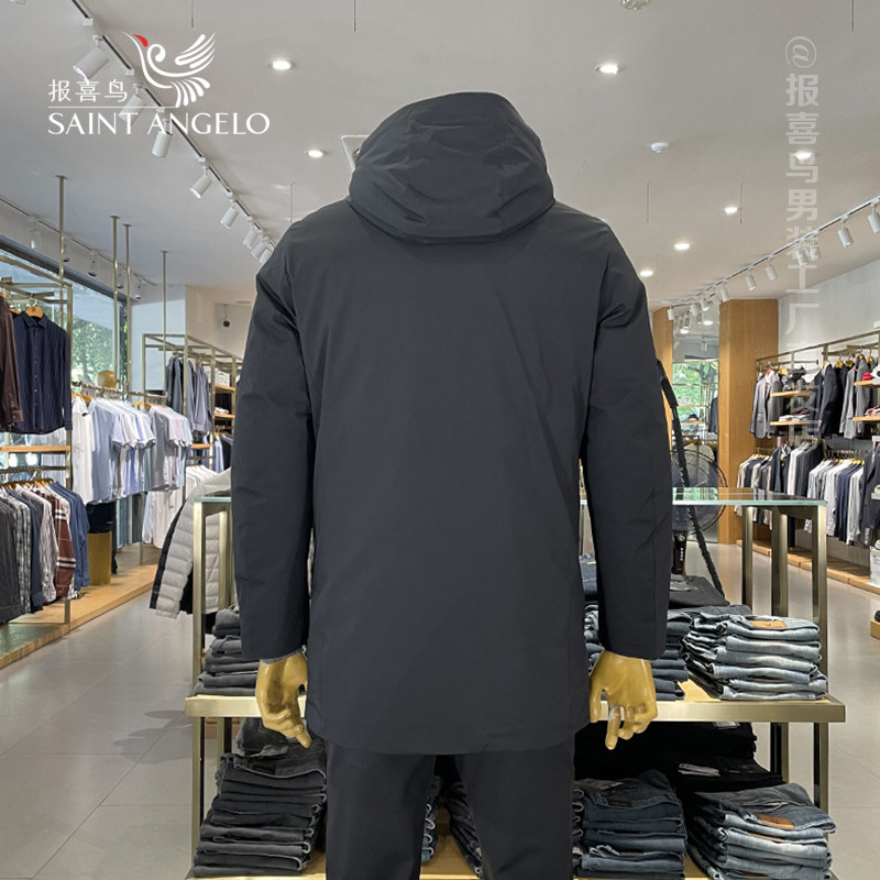 报喜鸟羽绒服男中长款连帽男士带帽白鸭绒冬季外套男款冬装上衣