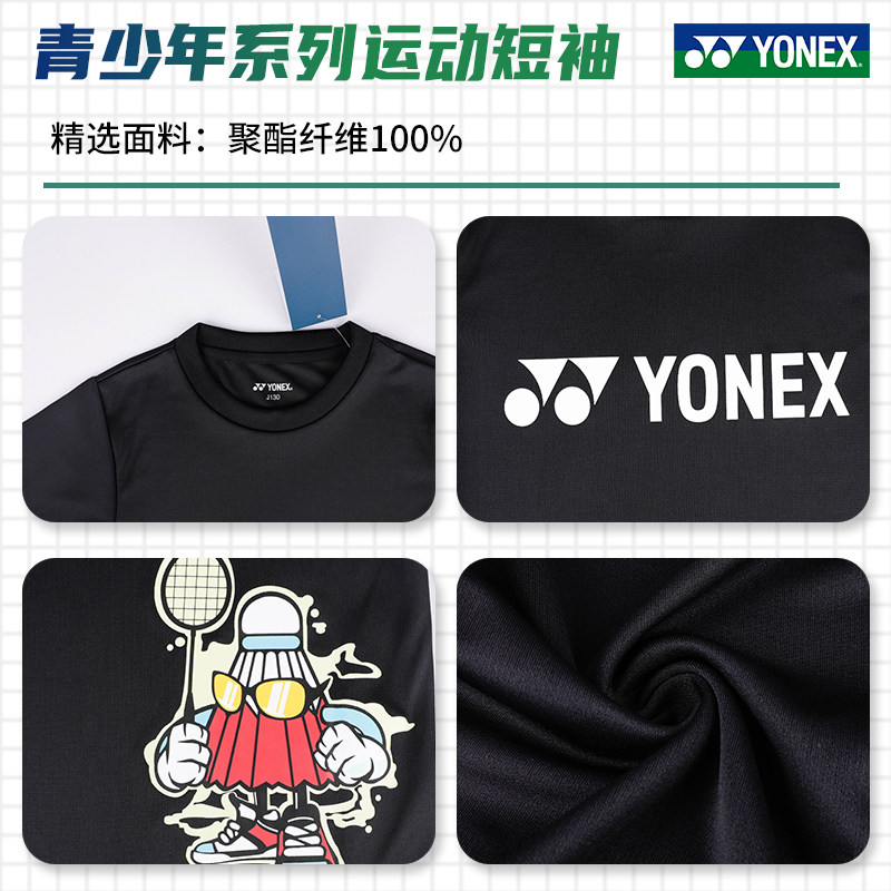 真正品尤尼克斯儿童羽毛球服男女青少年文化衫yy速干短袖运动上衣