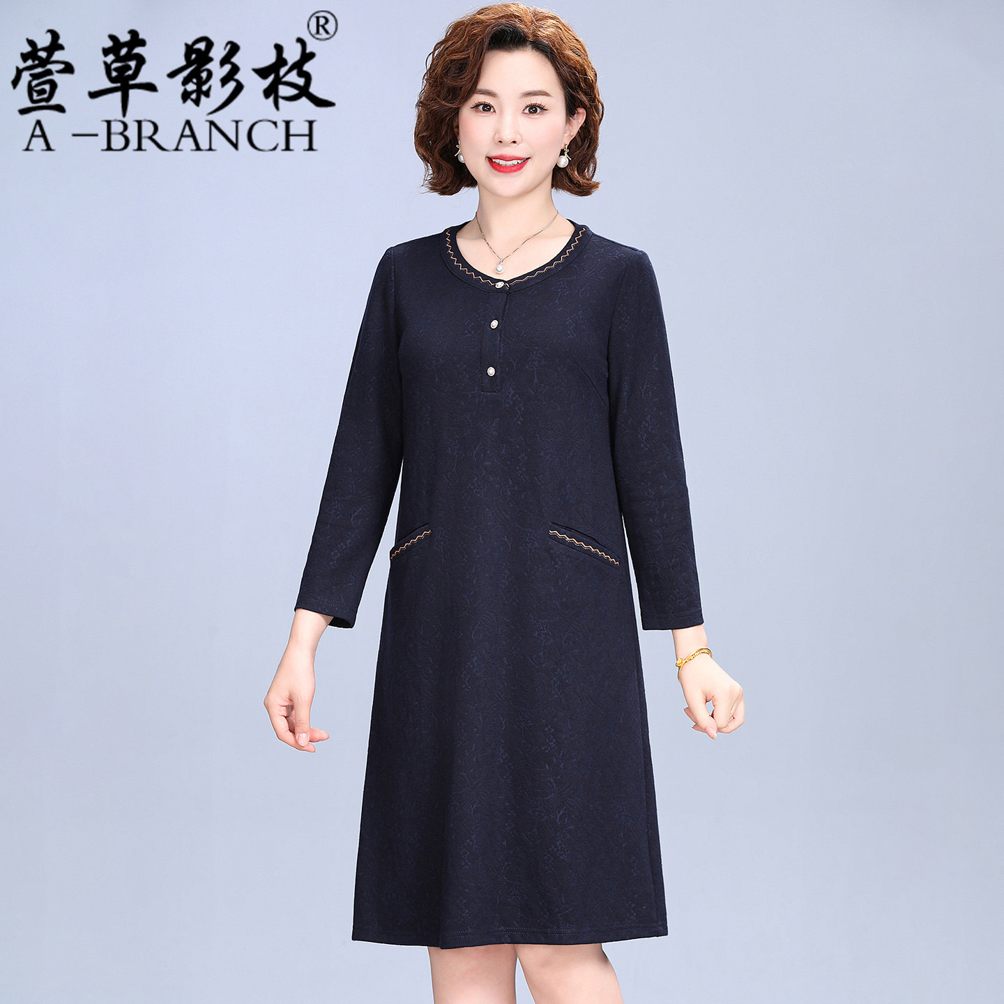 洋气妈妈春秋装长袖连衣裙2026新款中老年女士喜婆婆婚宴礼服裙子