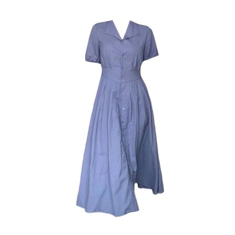 大码胖mm法式高级感短袖衬衫连衣裙女夏季梨型身材穿搭收腰长裙子