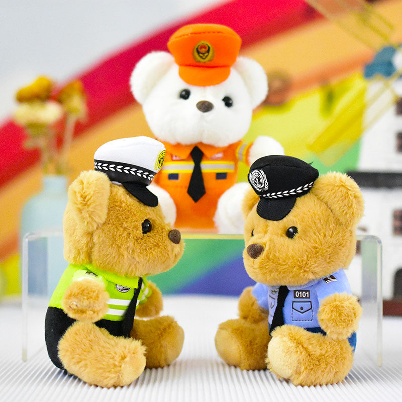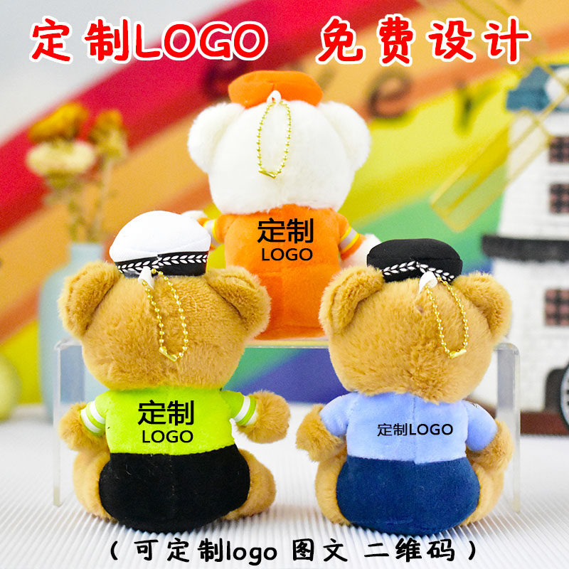 交警小熊毛绒钥匙扣玩偶制服小礼物警官公仔小挂件定制logo批发