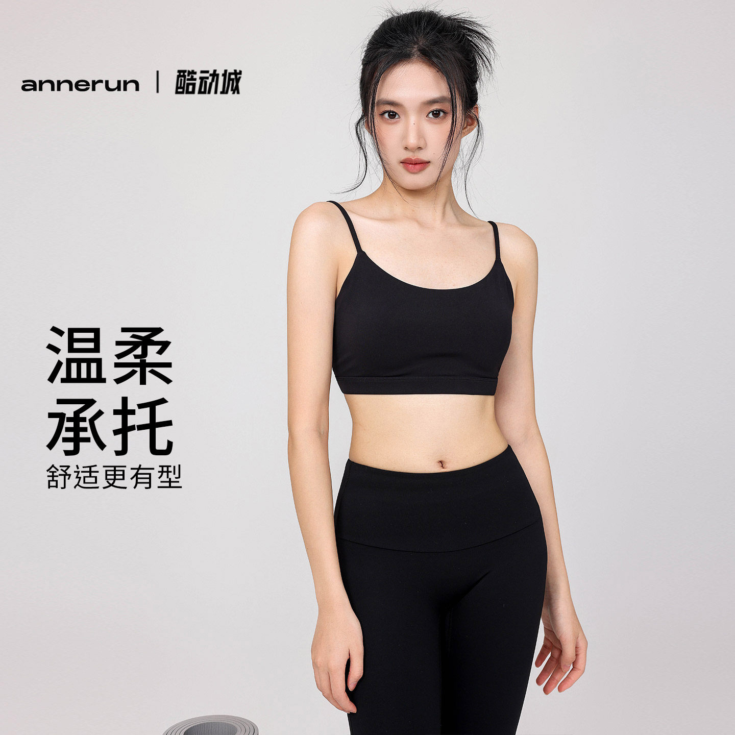 annerun瑜伽背心女外穿无痕裸感基础款运动背心带胸垫健身服美背