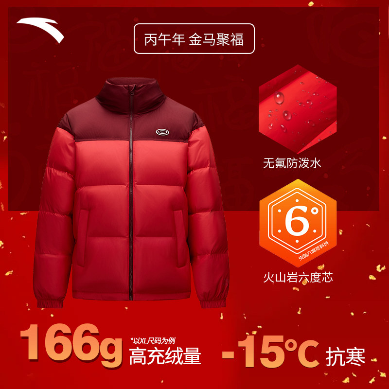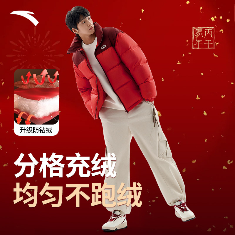 安踏羽绒服男款2026冬季新款男士马年本命年衣服新年红色羽绒外套