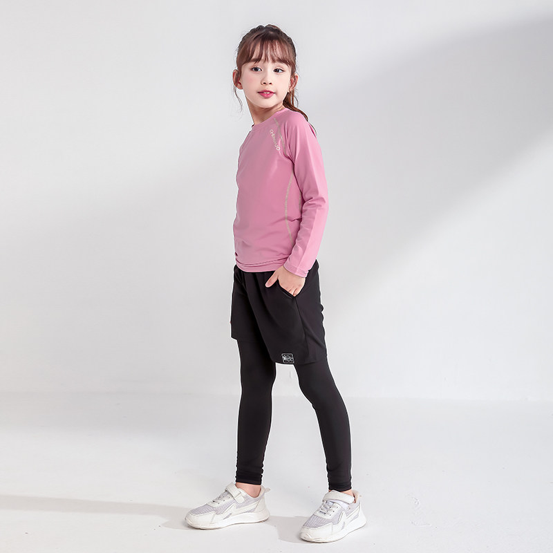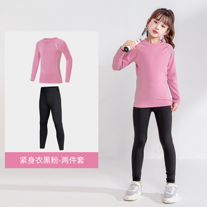 女童羽毛球训练服2025春秋款儿童篮球打底衣女孩跑步速干运动套装