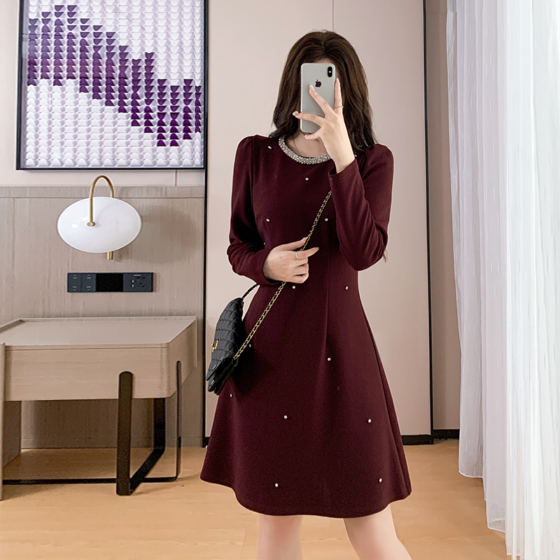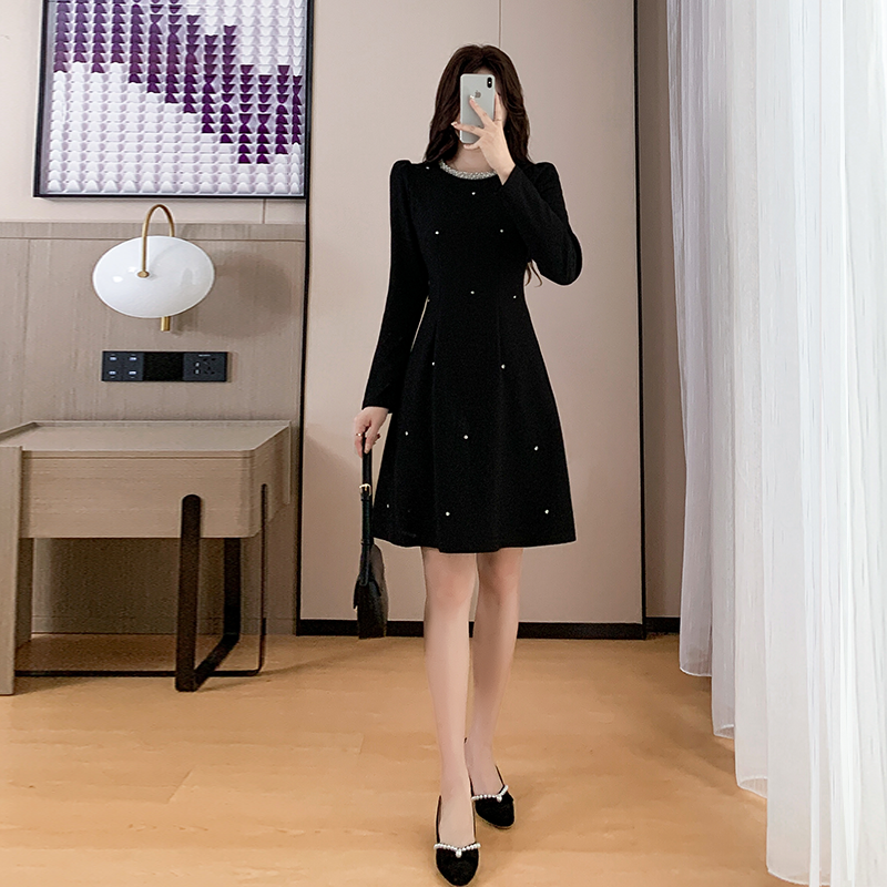 法式重工高级感连衣裙女中长款2025秋冬装新款气质收腰显瘦炸街裙