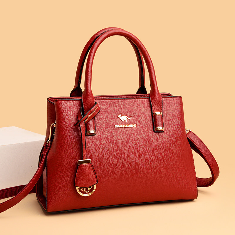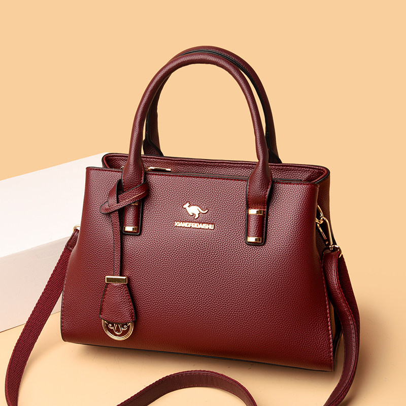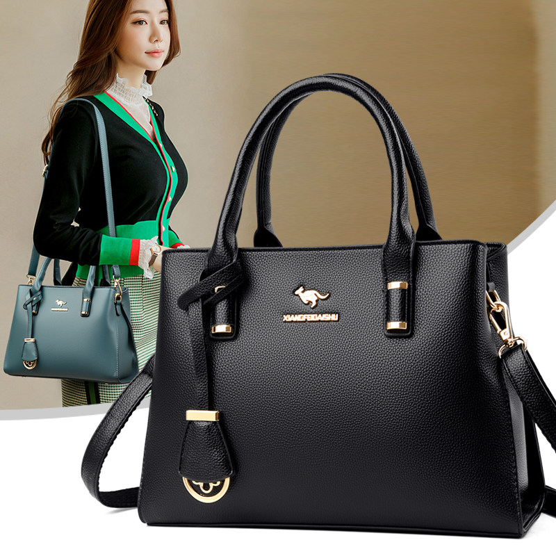 袋鼠真皮手拎包包女2025新款爆款中年妈妈包女士大容量百搭手提包