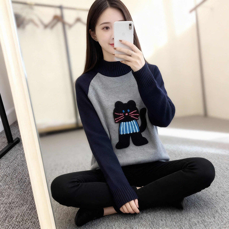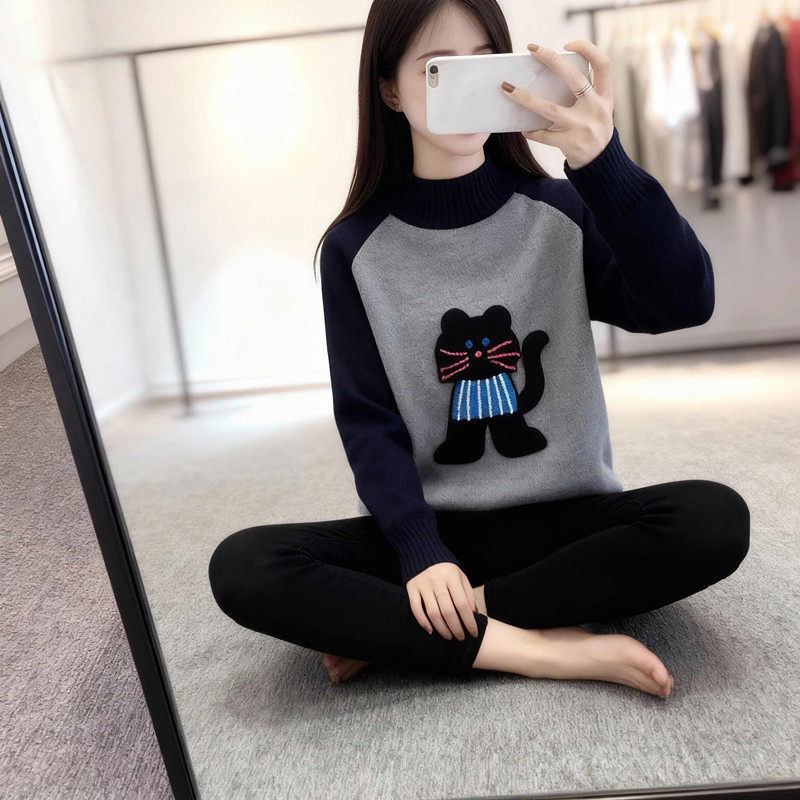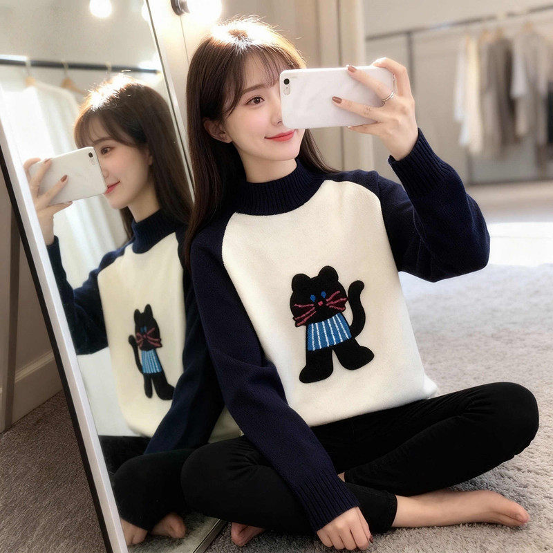 12岁大童女孩半高领毛衣13秋冬装加绒加厚15初中生宽松内搭打底衫