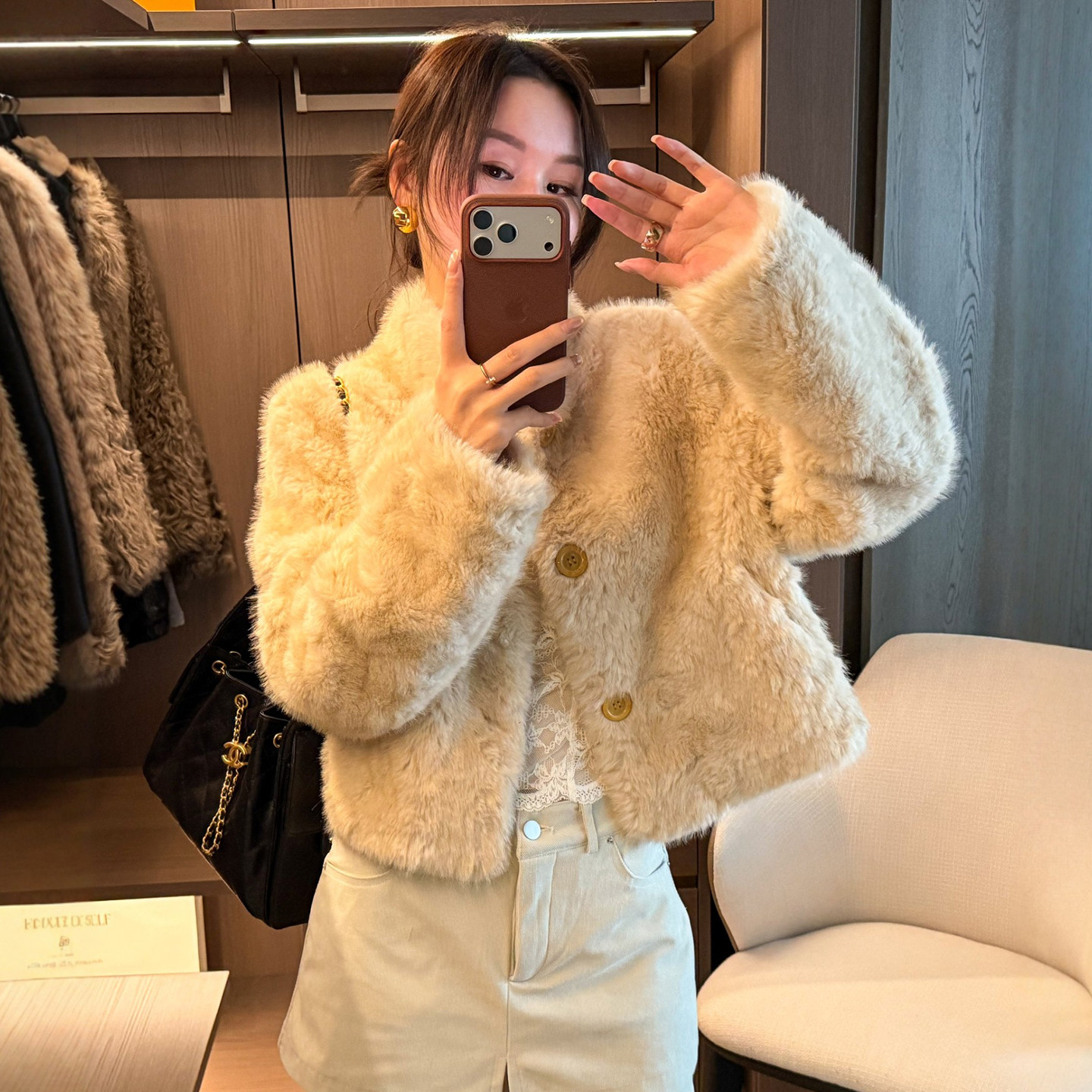 羊羔毛皮毛一体短外套女欧洲站2025冬装新款欧货女装小个子上衣潮