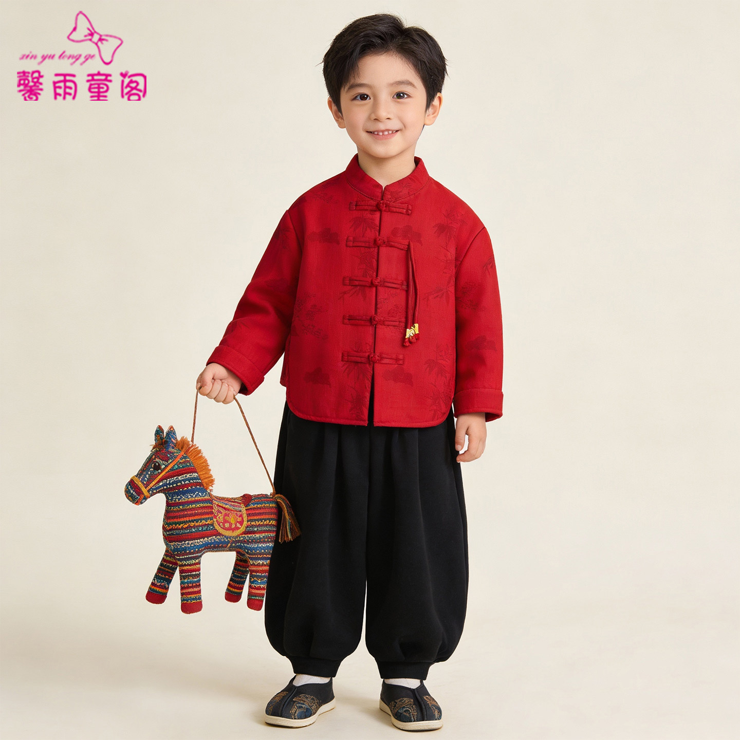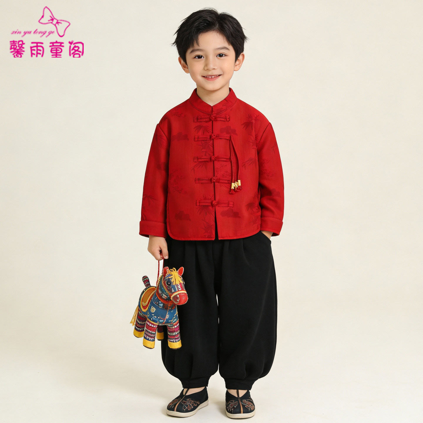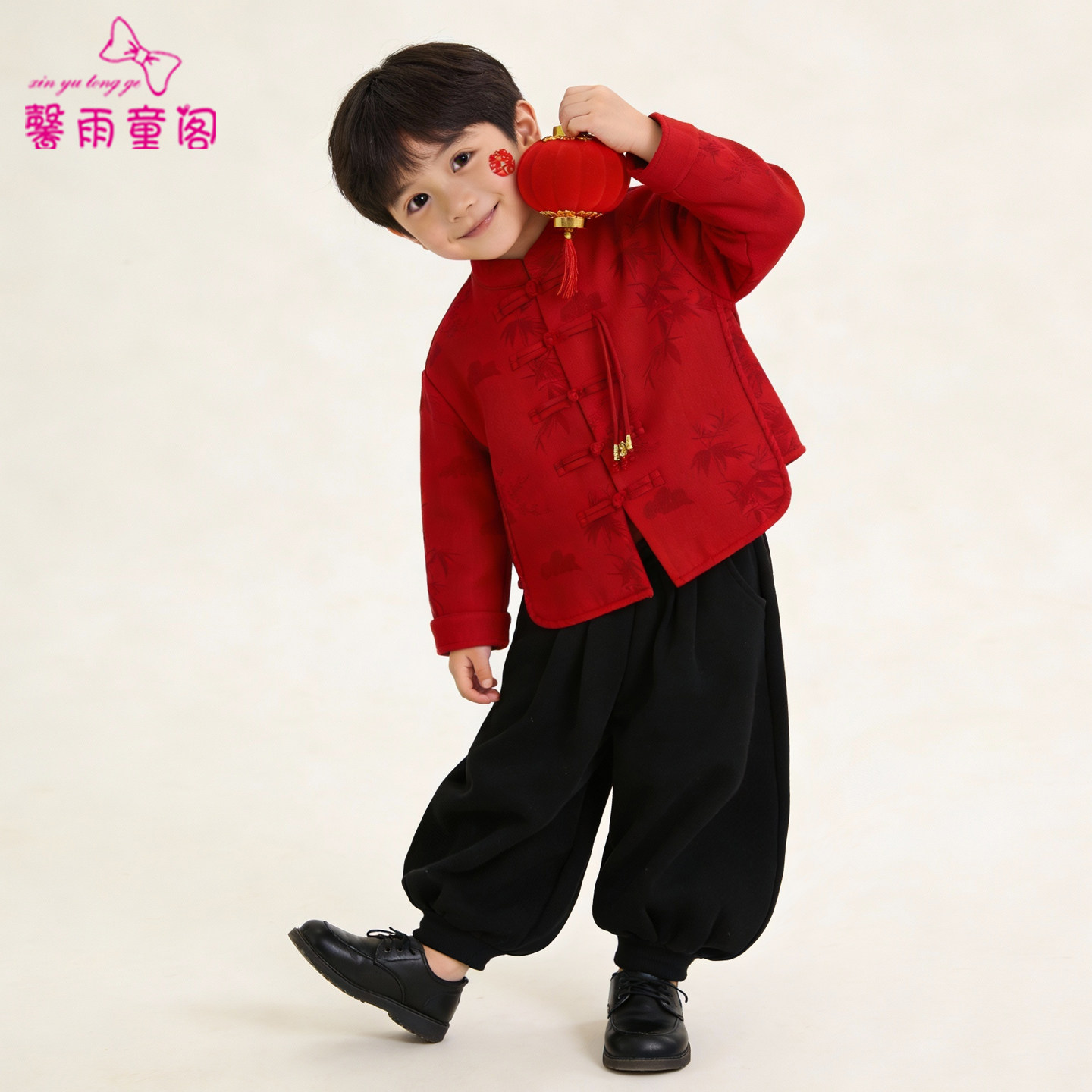 新中式男童拜年服红色新年唐装2026新款国风套装儿童喜庆过年衣服