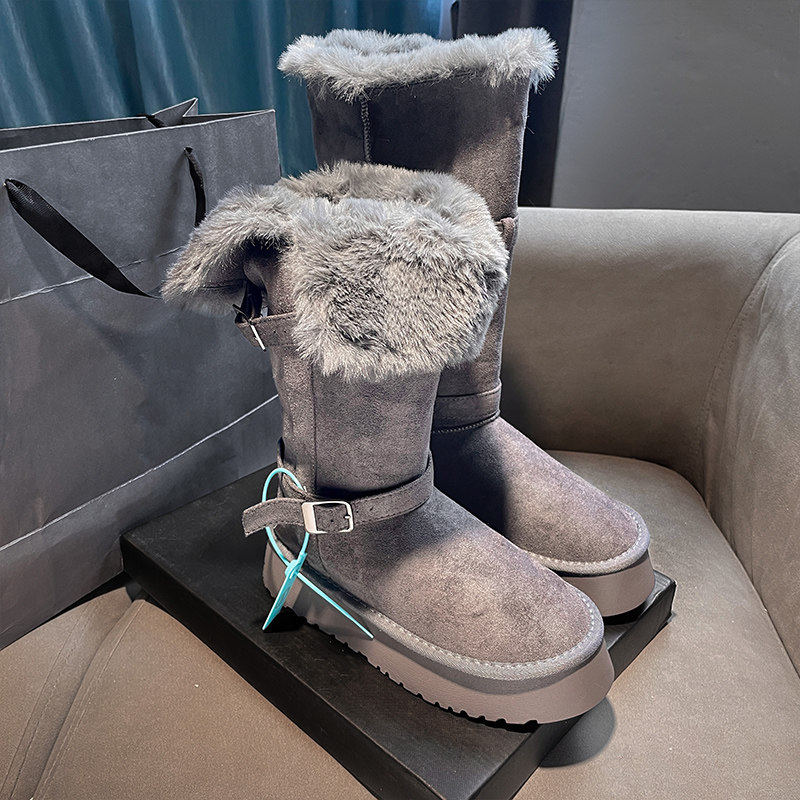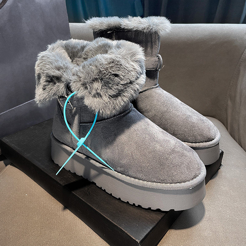 白色增高厚底短筒雪地靴女款2025冬季新款加绒加厚长筒雪地棉鞋子