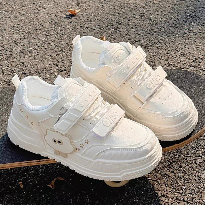 女童鞋2026新款秋季儿童魔术贴小白鞋女孩皮面休闲运动板鞋中大童