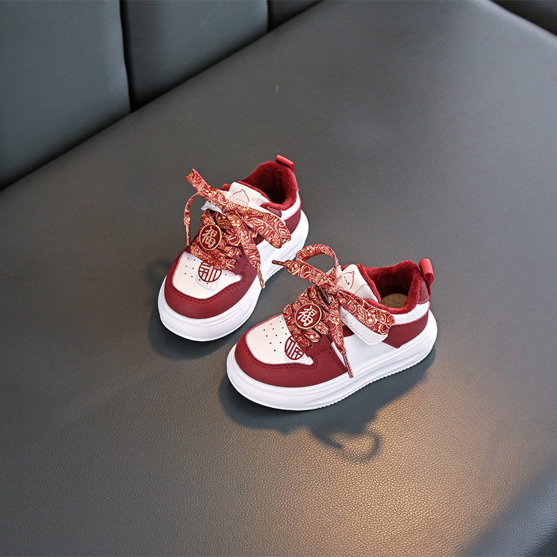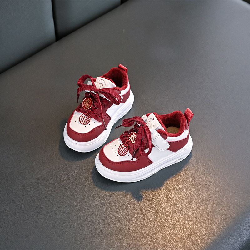 2025新年款儿童冬季皮面防水运动鞋男女童加绒保暖小中童跑步潮鞋