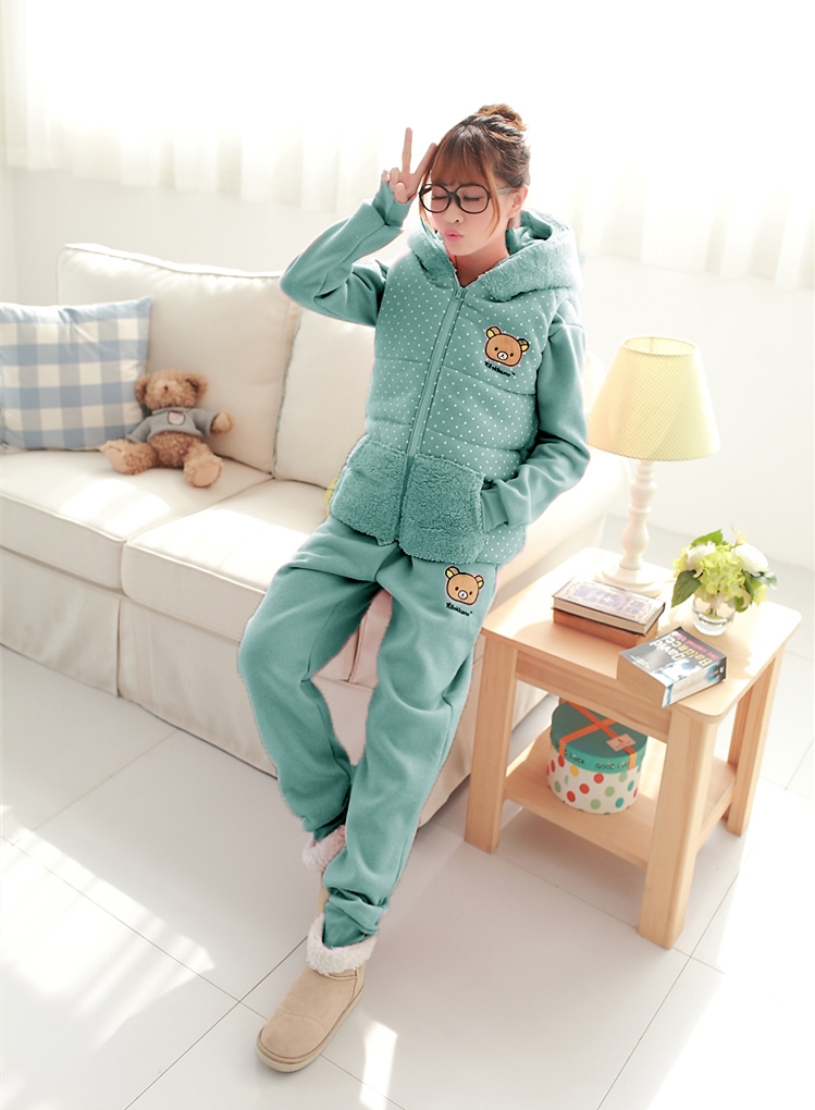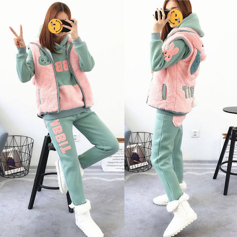 新款秋冬装加厚加绒卫衣套装女装三件套卡通减龄休闲运动可爱带帽