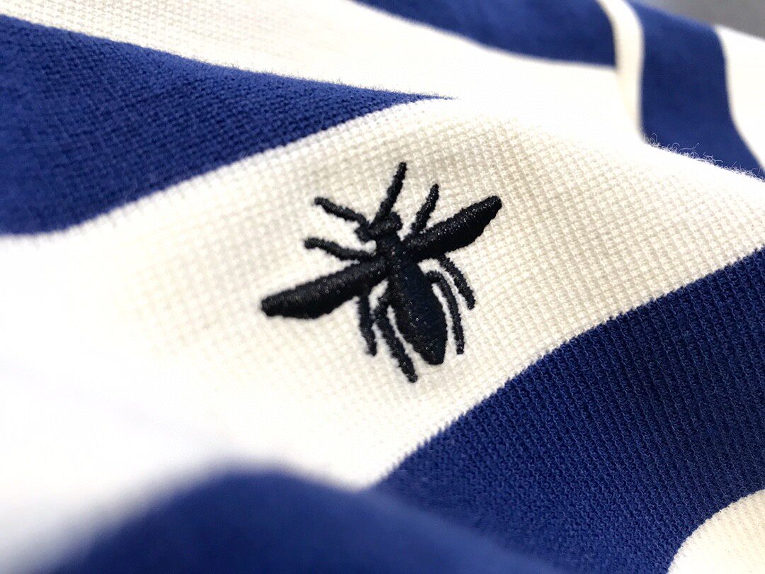 宽格条纹刺绣小蜜蜂长袖T恤减龄休闲韩版卫衣秋季男女款可爱潮牌
