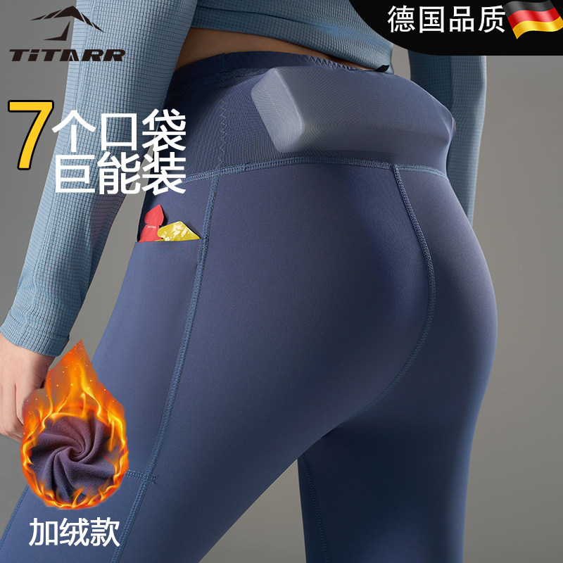 TiTA加绒导汗裤专业马拉松压缩裤女腰包健身运动裤跑步长裤男秋冬