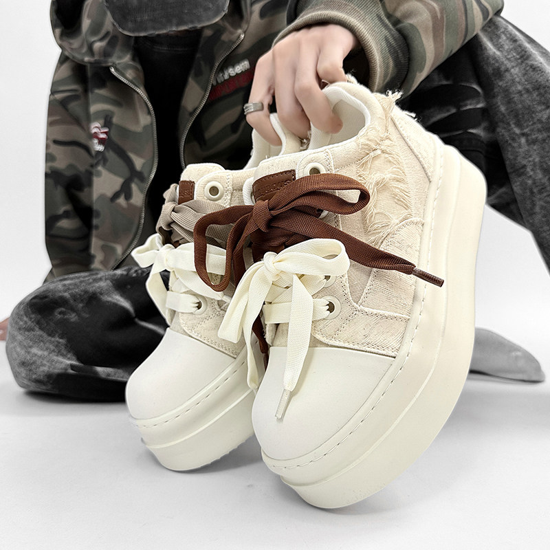 小众新款板鞋8CM隐形增高帆布鞋百搭休闲RO鞋厚底板鞋男女款潮鞋