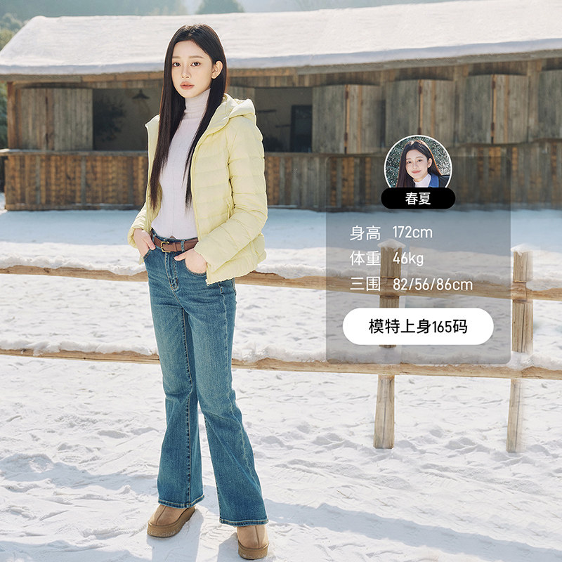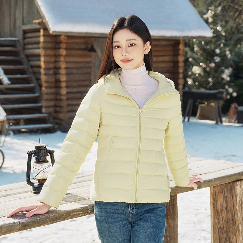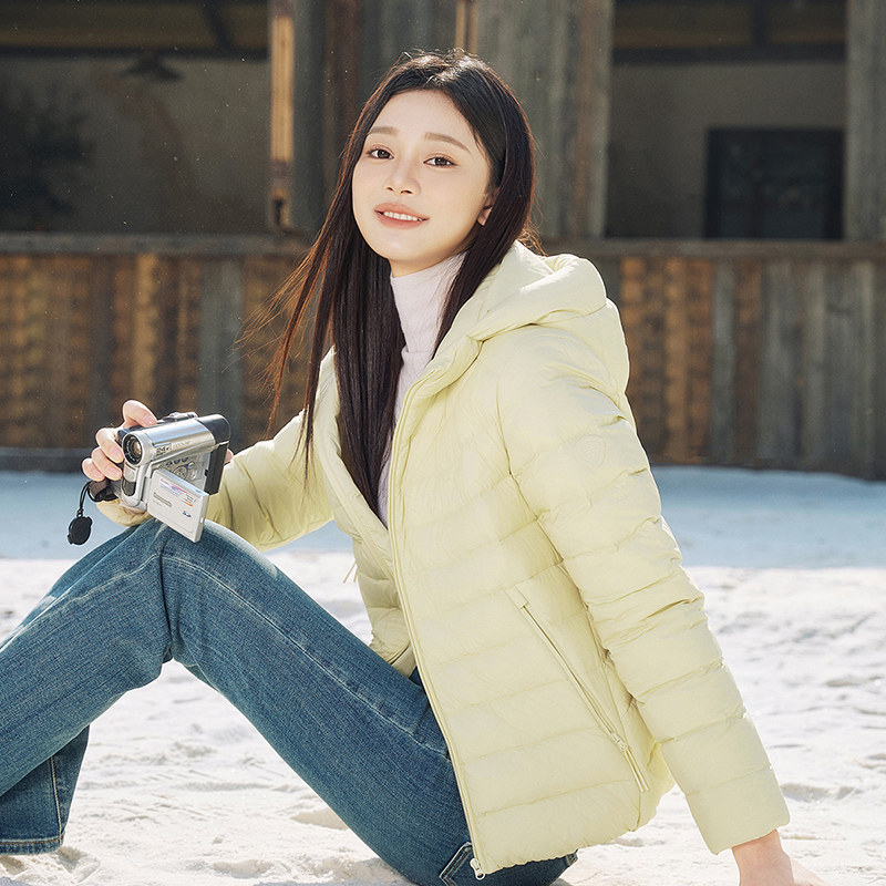 坦博尔女款羽绒服2026春季新款连帽通勤短款鸭绒经典轻薄保暖外套