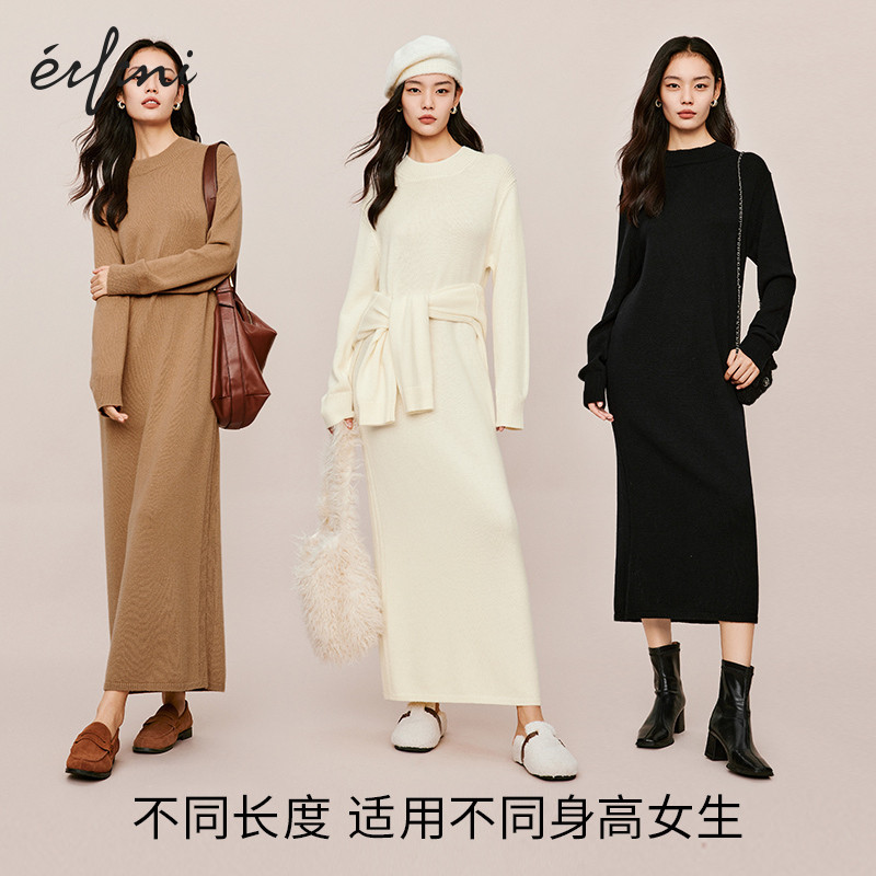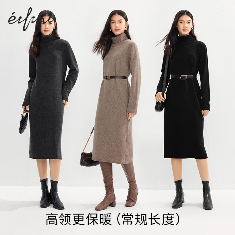 伊芙丽可机洗基础百搭羊毛加厚保暖长款内搭针织连衣裙女秋冬裙子