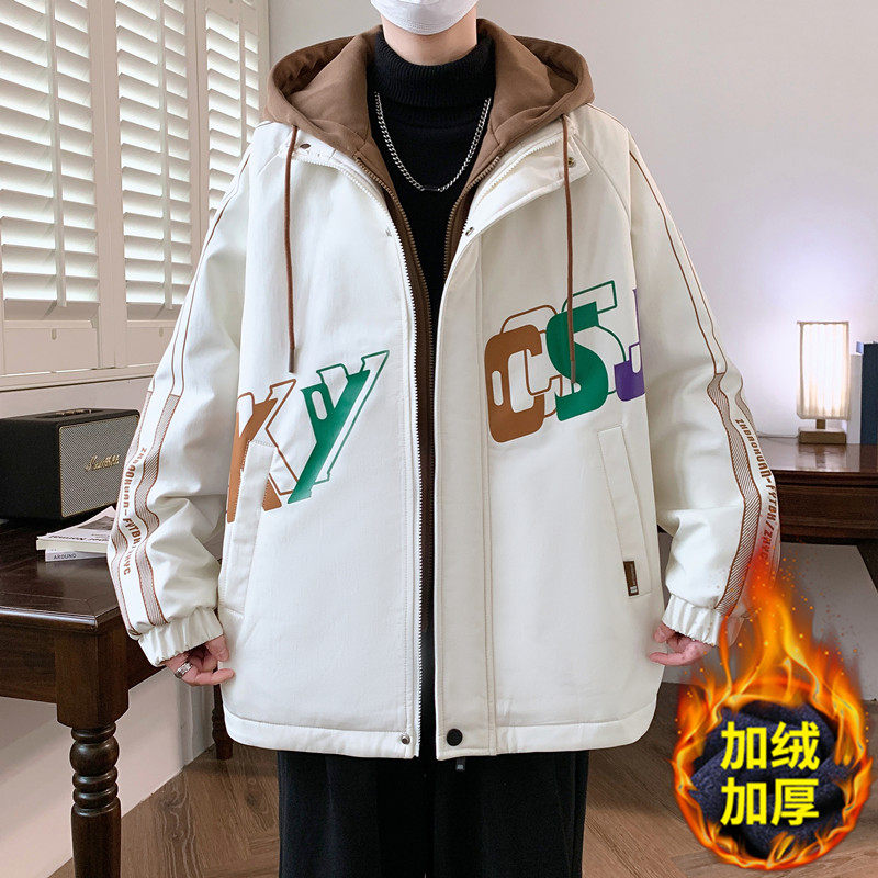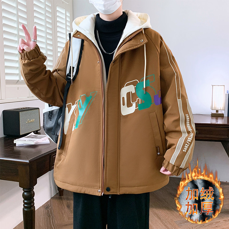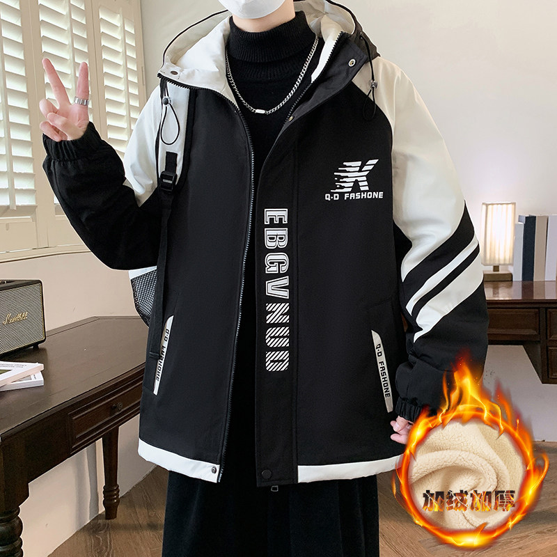 秋冬款加绒外套男孩初中高中学生加厚保暖棉服夹克青少年大童冬装