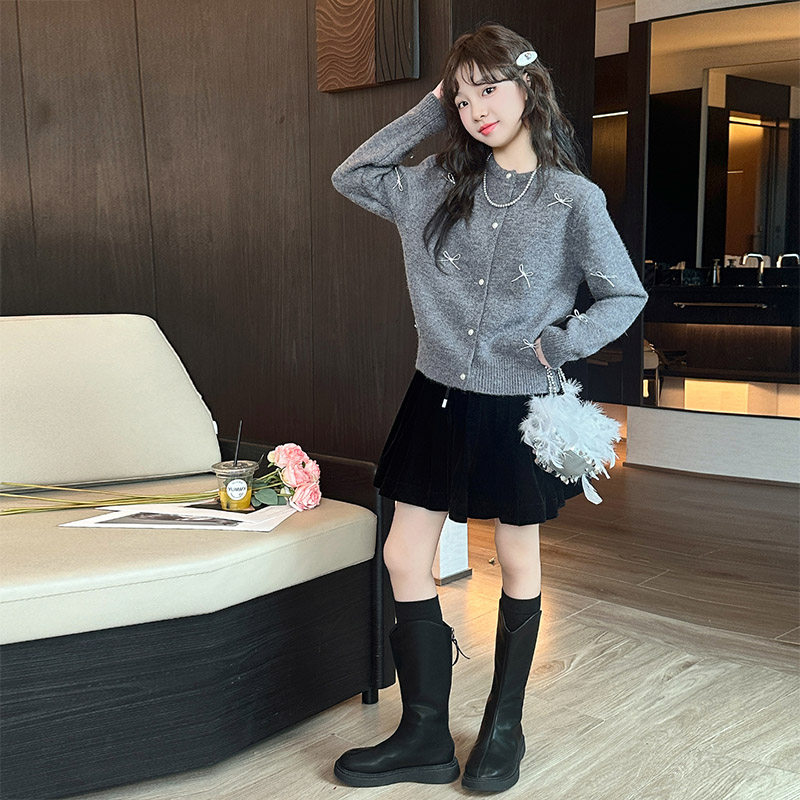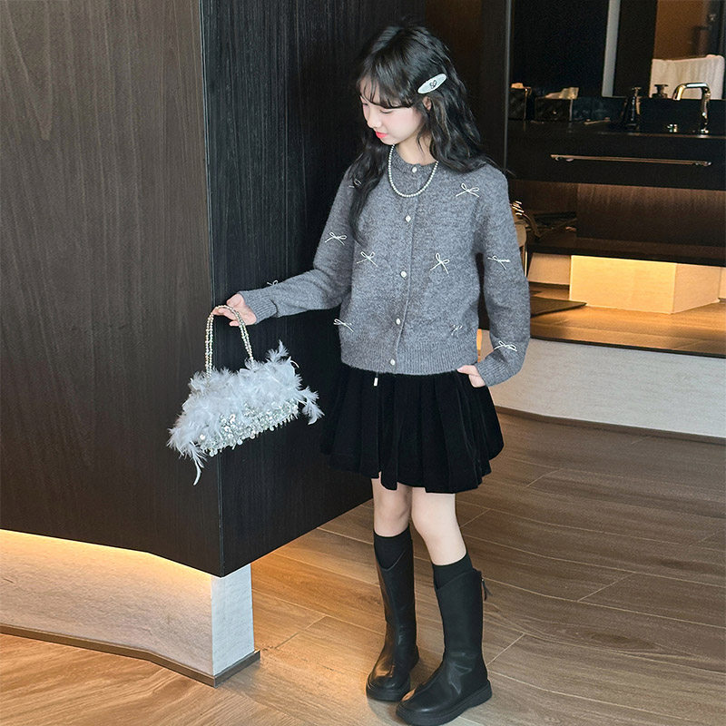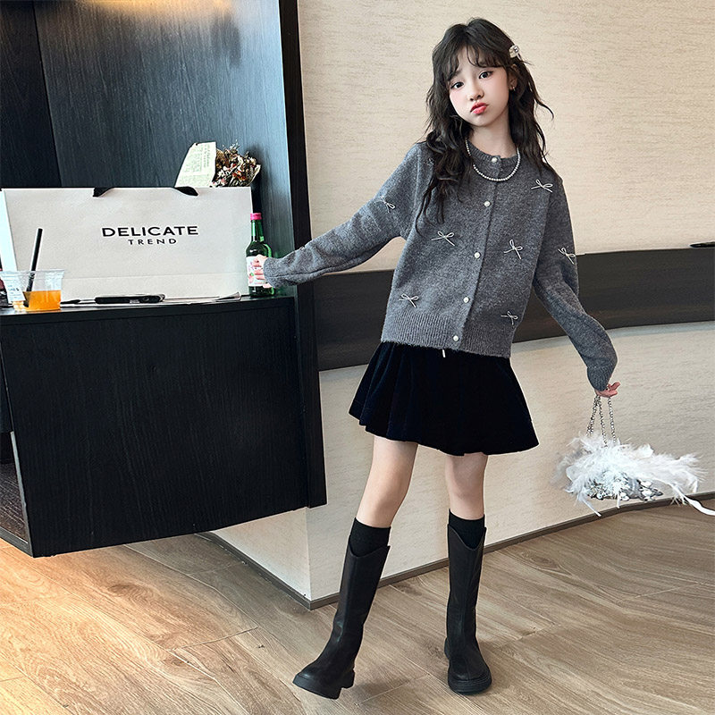 女童秋装套装2026新款女大童针织开衫外套女孩儿童韩系好看半身裙