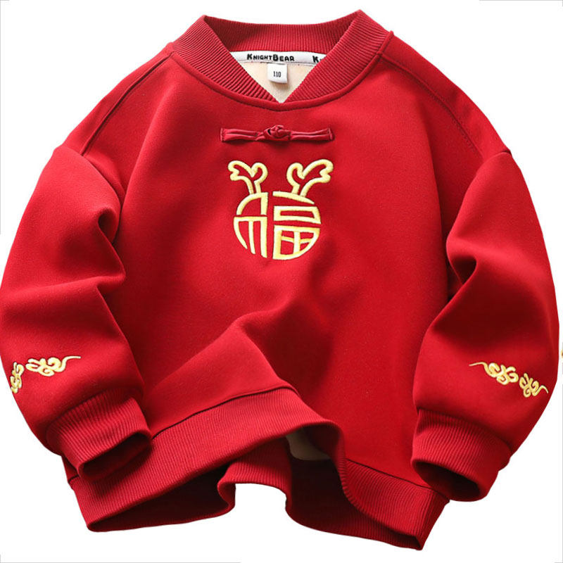 新年装男童加绒卫衣2024冬季儿童新中式保暖上衣中大童蛇年拜年服